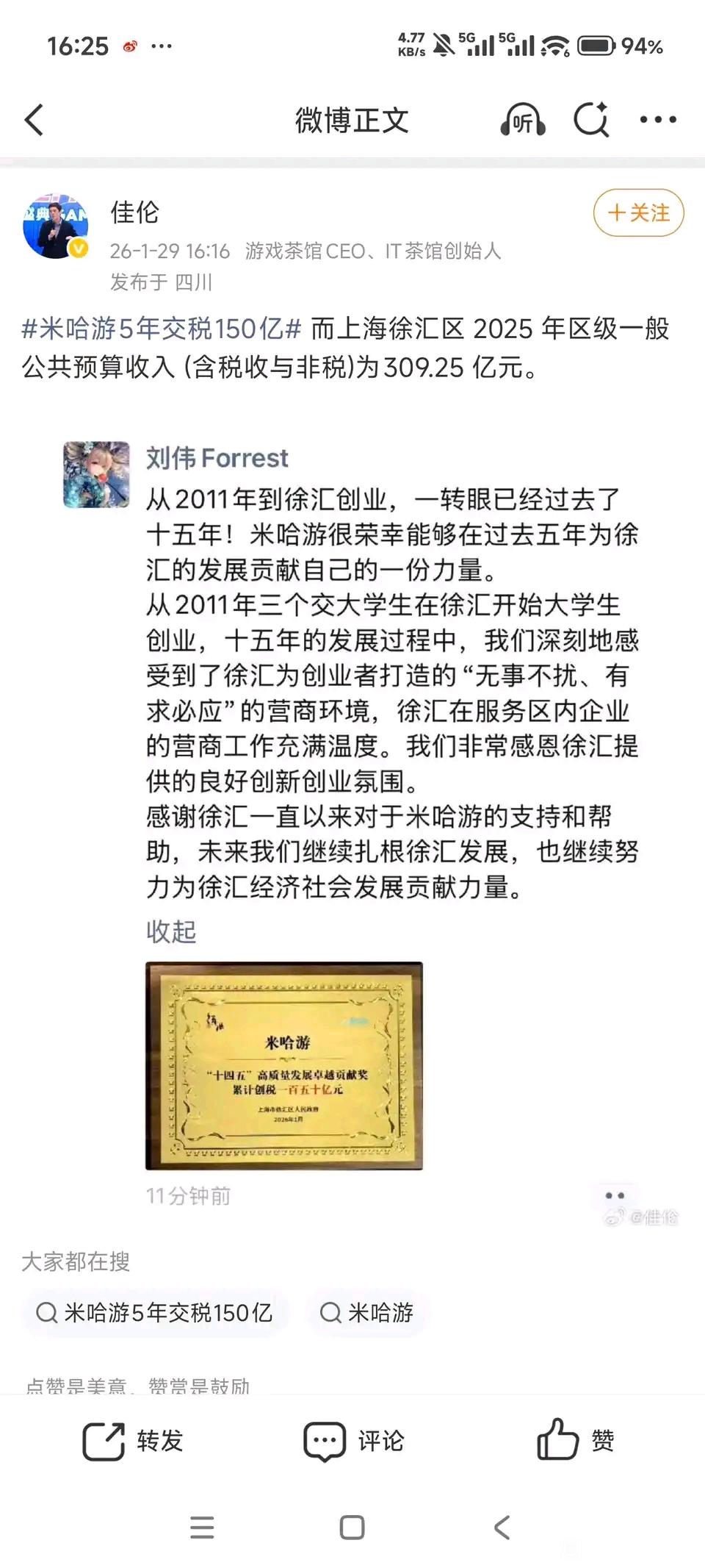 寂寞风尘XE 幻影嚣尘回复:创税是包含了米哈游带动的其他企业供应商合缴的税,但他是徐汇一区的统计啊,米哈游本区的供应商最多就是公司所在地的物业管理,人事设施等等开销带动的税费,肯定有这些但比例是非常小的,不在徐汇区的厂商更是不计算进去。但这点税费也算创税,不过就是为了严谨而使用创税这个说法