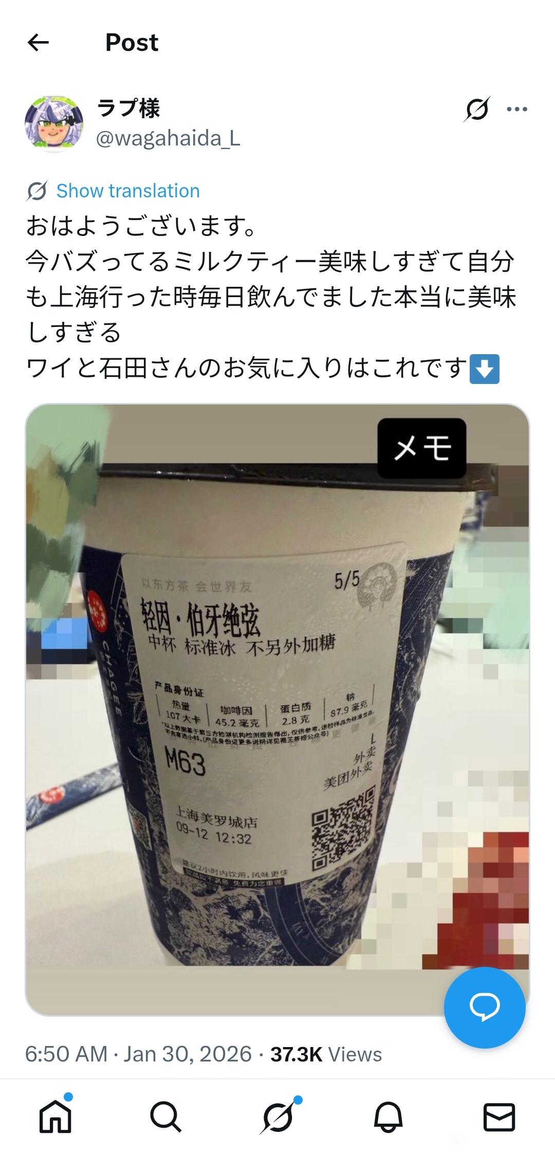 冈子喜欢喝霸王茶姬