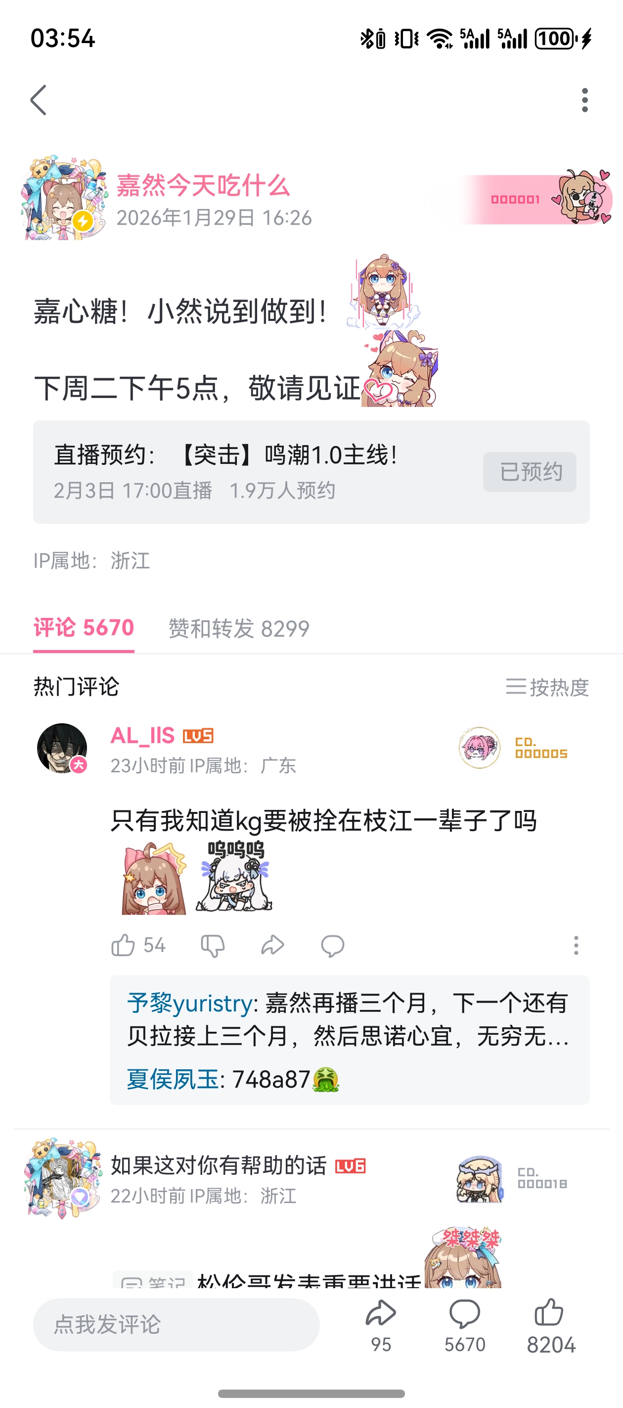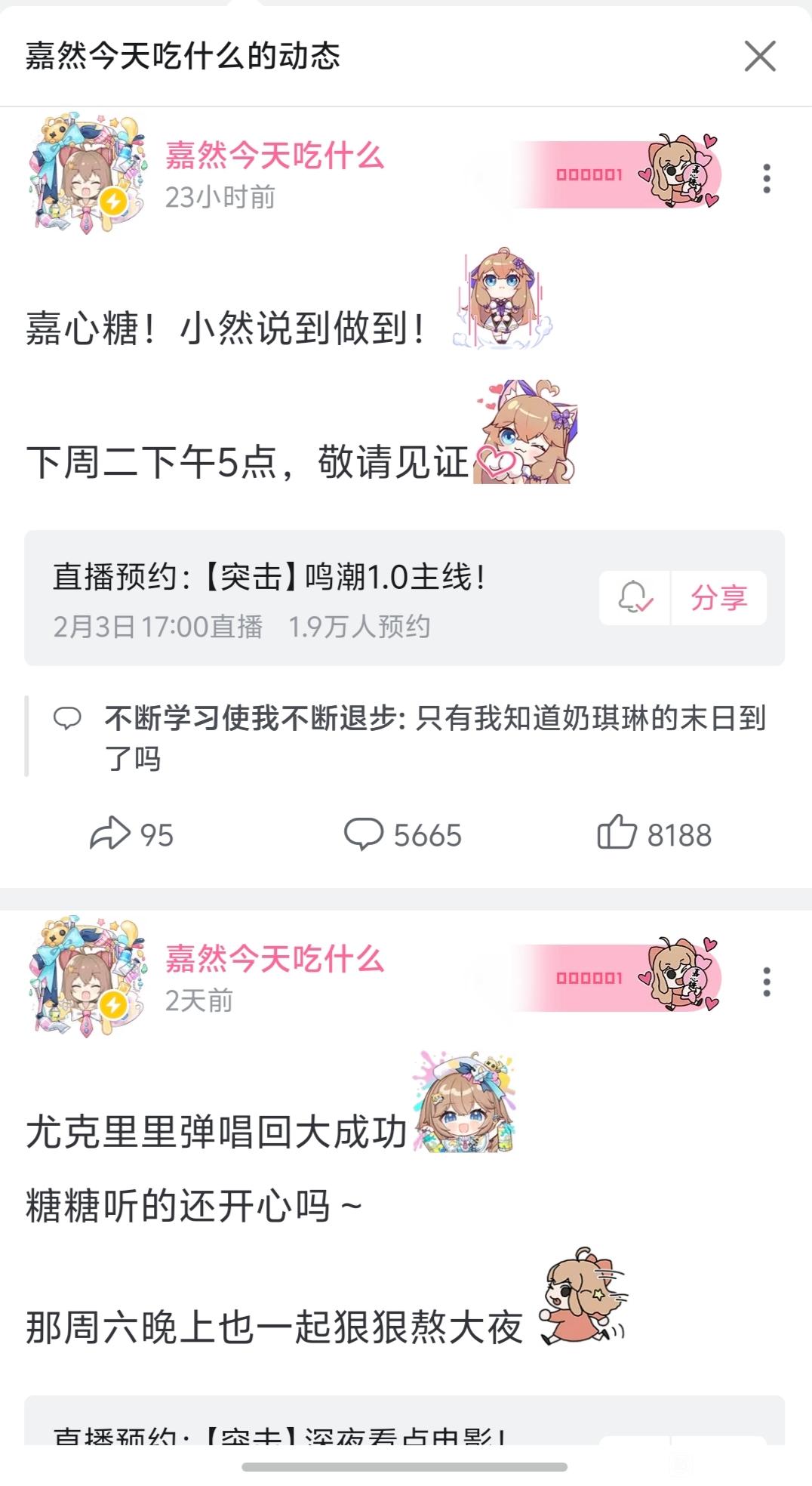 116楼5条pid:1531455617932026/01/30 15:24:32电光影里斩嘉然8级 两万同接你抽二十张一无名小猪一 楼主 8级 我没看错20张才600吧电光影里斩嘉然 层主 8级 回复 一无名小猪一 :可以可以,抱抱你,我就不要了😘一无名小猪一 楼主 8级 回复 米罗克(然唯形态) ::好的好的,然姨现在这情况,捅破天也就上个2万吧电光影里斩嘉然 层主 8级 回复 一无名小猪一 :我估计刚开始有个三四w一无名小猪一 楼主 8级 回复 米罗克(然唯形态) ::那很不错了