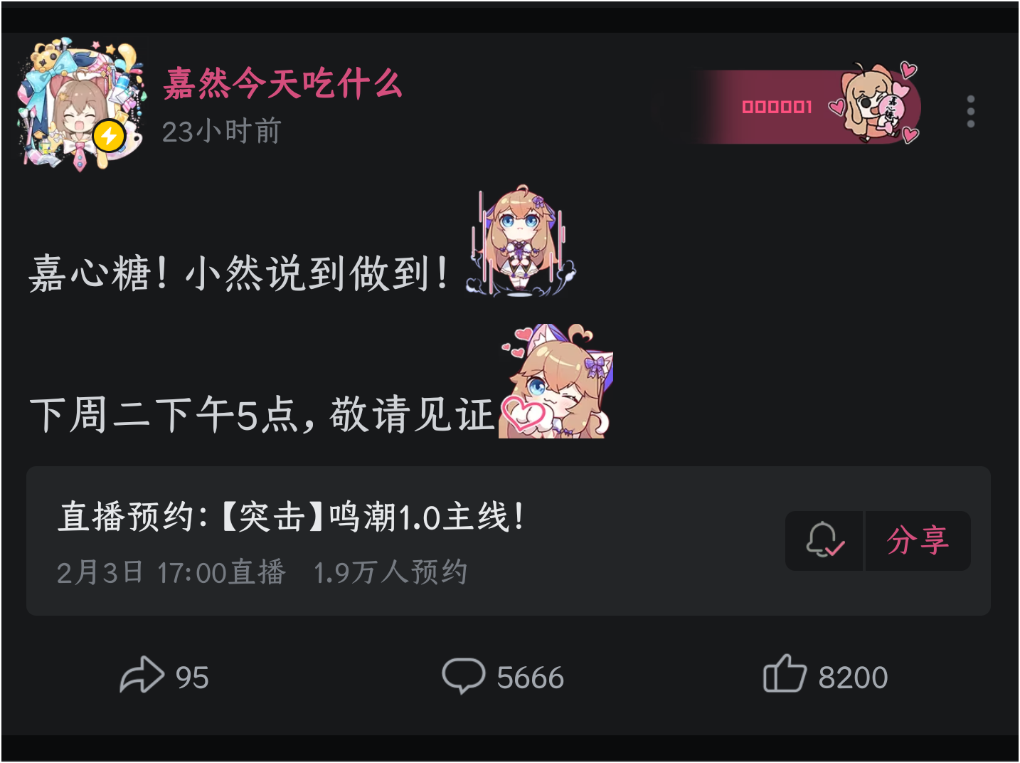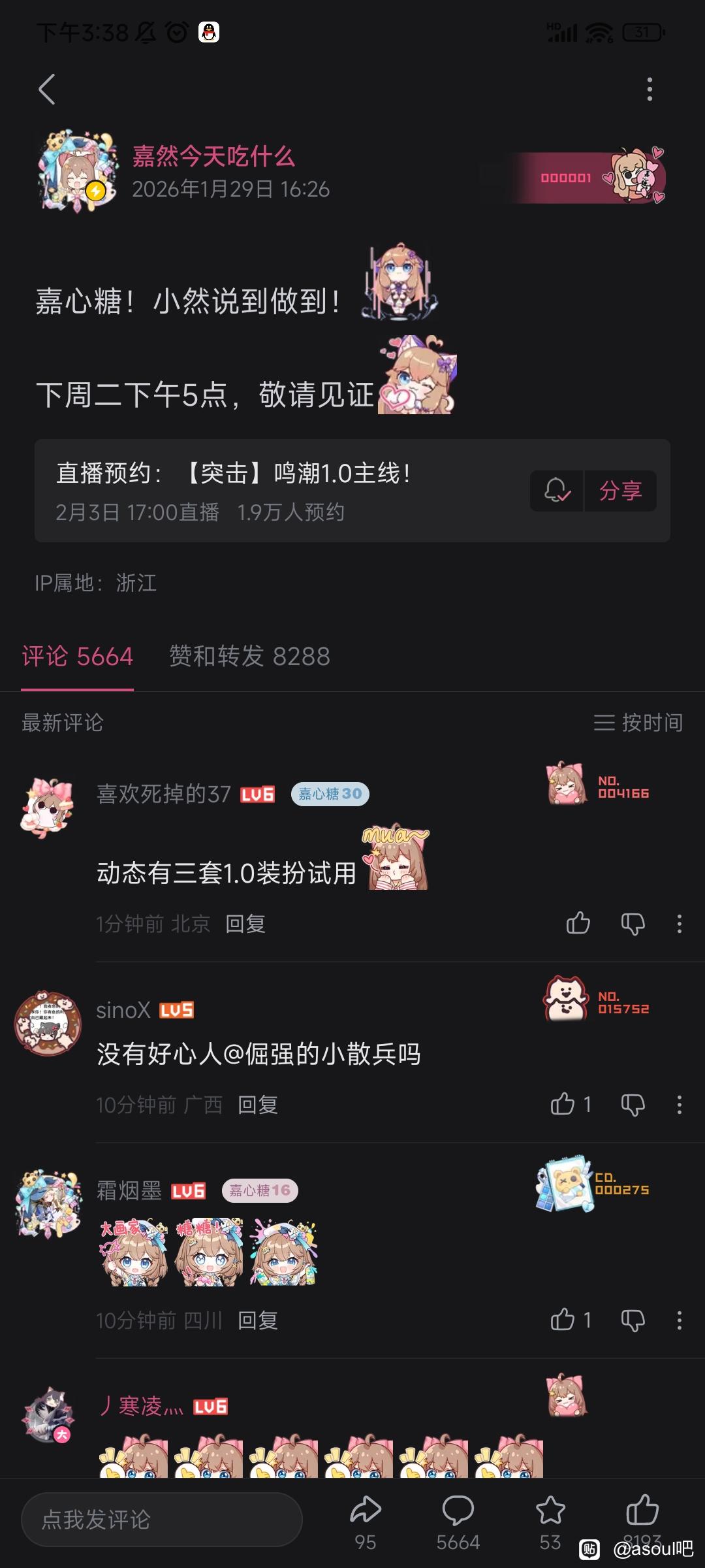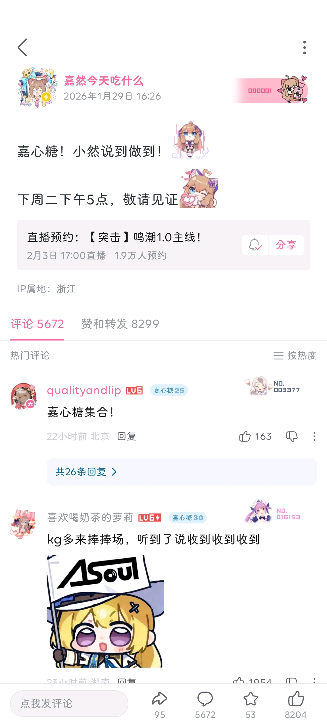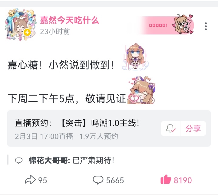 asoul吧 抽10张月卡,直播预约截图抽奖tid:104444638832026/01/30 14:59:306999479 3 129 0楼主:一无名小猪一最后回复:折亚狂乃琴2026/02/03 17:51:2898楼pid:1531455529352026/01/30 15:21:57GYRDRRS你是笨淡☺️☺️😼7级 11199楼pid:1531455534612026/01/30 15:22:07艾米莉亚碳www千秋nanami9级 111102楼pid:1531455541652026/01/30 15:22:20昏暗的海奥拉基尔💫11级 103楼pid:1531455545702026/01/30 15:22:27Acary77凛璃🌺1级 111104楼pid:1531455552432026/01/30 15:22:39等待丶花怜雨雨雨雪天11级 1111111111111105楼pid:1531455554672026/01/30 15:22:42尛梦桑kenlin9级 111106楼pid:1531455555482026/01/30 15:22:44七羽姐的鹰山仁4级 已严肃预约107楼pid:1531455555712026/01/30 15:22:45GYRDRRS你是笨淡☺️☺️😼7级 108楼pid:1531455566992026/01/30 15:23:06URBBR333杀意西格莉卡9级 然姐牛福110楼pid:1531455581542026/01/30 15:23:32_ACRV_一个鼻空4级 1111111楼pid:1531455587722026/01/30 15:23:43妖妖林吗雾悟😇10级 嗨慕我112楼pid:1531455596682026/01/30 15:23:59daisy二号机8级 神了113楼pid:1531455606962026/01/30 15:24:151357933817兔摆子12级 114楼pid:1531455614272026/01/30 15:24:26好渣人kati之桂冠8级 好好好115楼pid:1531455617792026/01/30 15:24:32自来水的奇迹8级 已预约116楼5条pid:1531455617932026/01/30 15:24:32电光影里斩嘉然8级 两万同接你抽二十张一无名小猪一 楼主 8级 我没看错20张才600吧电光影里斩嘉然 层主 8级 回复 一无名小猪一 :可以可以,抱抱你,我就不要了😘一无名小猪一 楼主 8级 回复 米罗克(然唯形态) ::好的好的,然姨现在这情况,捅破天也就上个2万吧电光影里斩嘉然 层主 8级 回复 一无名小猪一 :我估计刚开始有个三四w一无名小猪一 楼主 8级 回复 米罗克(然唯形态) ::那很不错了117楼pid:1531455639992026/01/30 15:25:10捡个石头先北京鸟巢好热8级 118楼pid:1531455650892026/01/30 15:25:27信手斩猪-9级 119楼pid:1531455665432026/01/30 15:25:53蒙娜力兔11级 120楼pid:1531455674102026/01/30 15:26:08Stupidbiqutsstupidbiq8级 111121楼pid:1531455688802026/01/30 15:26:33芝士袋鼠🧀🦘9级 122楼pid:1531455721092026/01/30 15:27:29我已lun陷薄暮耿耿4级 111123楼pid:1531455723052026/01/30 15:27:32贴吧用户_aGW6yya7级 111124楼pid:1531455724132026/01/30 15:27:34略有潜力7级 加醋发狂了125楼pid:1531455743692026/01/30 15:28:08shiki8级 126楼pid:1531455743792026/01/30 15:28:08hyqysys1314尼古拉小二⛄6级 127楼pid:1531455791052026/01/30 15:29:33孤高明金木槿昔年🤔10级 黑幕我128楼pid:1531455802602026/01/30 15:29:55海入生旧年7级 129楼pid:1531455807262026/01/30 15:30:04zxcv记忆擎天柱(恩师DCQ)8级 已严肃预约130楼pid:1531455823102026/01/30 15:30:32vbvbvnh链式反应💢7级 133楼pid:1531455853112026/01/30 15:31:28一个有猫的人a苏卡不列💍7级 来支持力134楼pid:1531455870732026/01/30 15:32:02露早的狗幻海映月🌕7级 111135楼pid:1531455874962026/01/30 15:32:10隐君雨洁胡言|乱语9级 111136楼pid:1531455886652026/01/30 15:32:32Sandm丶墨瞳MahDr12级 黑幕我137楼pid:1531455895152026/01/30 15:32:49xjzkskskxkxmx贴吧用户_GXRDaJX3级 138楼pid:1531455928452026/01/30 15:33:49KeYuki1239级 111139楼pid:1531455929142026/01/30 15:33:51拉拉拉拉我来了小c仙尊9级 好好好140楼pid:1531455934892026/01/30 15:34:01パステルレイン6级 已严肃预约141楼pid:1531455937222026/01/30 15:34:05董Hiang发呆_d807级 142楼pid:1531455957712026/01/30 15:34:43明月焕____若智如初见💫小吧13级 143楼pid:1531455958622026/01/30 15:34:45舍迩h舍迩11级 已严肃预约144楼pid:1531455965952026/01/30 15:34:58阿那克萨戈拉斯23级 我不要月卡,如果中了请让我返回翁法洛斯,我的课还没上完。145楼pid:1531455971832026/01/30 15:35:08yh哈嘻嘻嘻yyygggs3级 146楼pid:1531455974862026/01/30 15:35:14乄空白乄乄4级 已严肃预约😠147楼pid:1531456039872026/01/30 15:37:08豫守弗洛拉7级 148楼pid:1531456068212026/01/30 15:37:59zzh13086655620不可以先急8级 111149楼3条pid:1531456075772026/01/30 15:38:13奈莎格0027级 怎么还要图的一无名小猪一 楼主 8级 就要就要奈莎格002 层主 7级 回复 一无名小猪一 :现在都快两万预约了,感觉可能看的人还真不会少啊一无名小猪一 楼主 8级 回复 奈莎格002 :好事呀150楼pid:1531456082342026/01/30 15:38:24日乐星晨冰竹7级 151楼pid:1531456092972026/01/30 15:38:45浮生若_梦06级 要是能抽到鸣潮月卡就好了152楼pid:1531456107112026/01/30 15:39:12无星夜的叹咏7级 好好好153楼pid:1531456112592026/01/30 15:39:22幸运的嘘為高雅贝极星✨13级 111154楼pid:1531456120322026/01/30 15:39:36不死终赢白马玩家6级 111155楼pid:1531456136992026/01/30 15:40:05双W昂w昂7级 这倒提醒我(预约)了156楼pid:1531456144622026/01/30 15:40:19雨中漫步的影小海豚🐬🐬7级 157楼pid:1531456152392026/01/30 15:40:32不死终赢白马玩家6级 11158楼pid:1531456180942026/01/30 15:41:21执墨的祭-7级 黑幕我159楼pid:1531456194792026/01/30 15:41:46我是温州刘德华微笑面对危险。3级 111160楼pid:1531456204932026/01/30 15:42:04tianlan12111明前照花8级 我我我161楼pid:1531456213272026/01/30 15:42:19克里夫斯基234级 162楼pid:1531456232362026/01/30 15:42:52执墨的祭-7级 111163楼pid:1531456259492026/01/30 15:43:39i君故iseraphi6级 黑幕我164楼pid:1531456272022026/01/30 15:44:01太白T太白ଳ9级 165楼pid:1531456286232026/01/30 15:44:27芙芙莉莉莲莲嘉の派1级 111166楼pid:1531456288972026/01/30 15:44:32小肥猫szk7级 只有我第一时间预约然后去群里骚扰朋友了吗?167楼pid:1531456308622026/01/30 15:45:08333tnt极度缺水7级 168楼pid:1531456317012026/01/30 15:45:22.1:7级 好好好169楼pid:1531456352292026/01/30 15:46:26空白页丶狮子月见草。6级 171楼pid:1531456365772026/01/30 15:46:51刻晴🍎7级 11111111111
