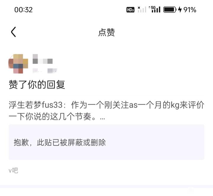 大号被v8封禁了。全网同id怎么了,我本来就不怕别人查成分。我在一个整理联动三个节奏的帖子下谈了自己的观点,其中第三个节奏就是关于梓神盒梗的事,我为自己盲目跟风道歉了,只不过他把a8和v吧的帖子都删了