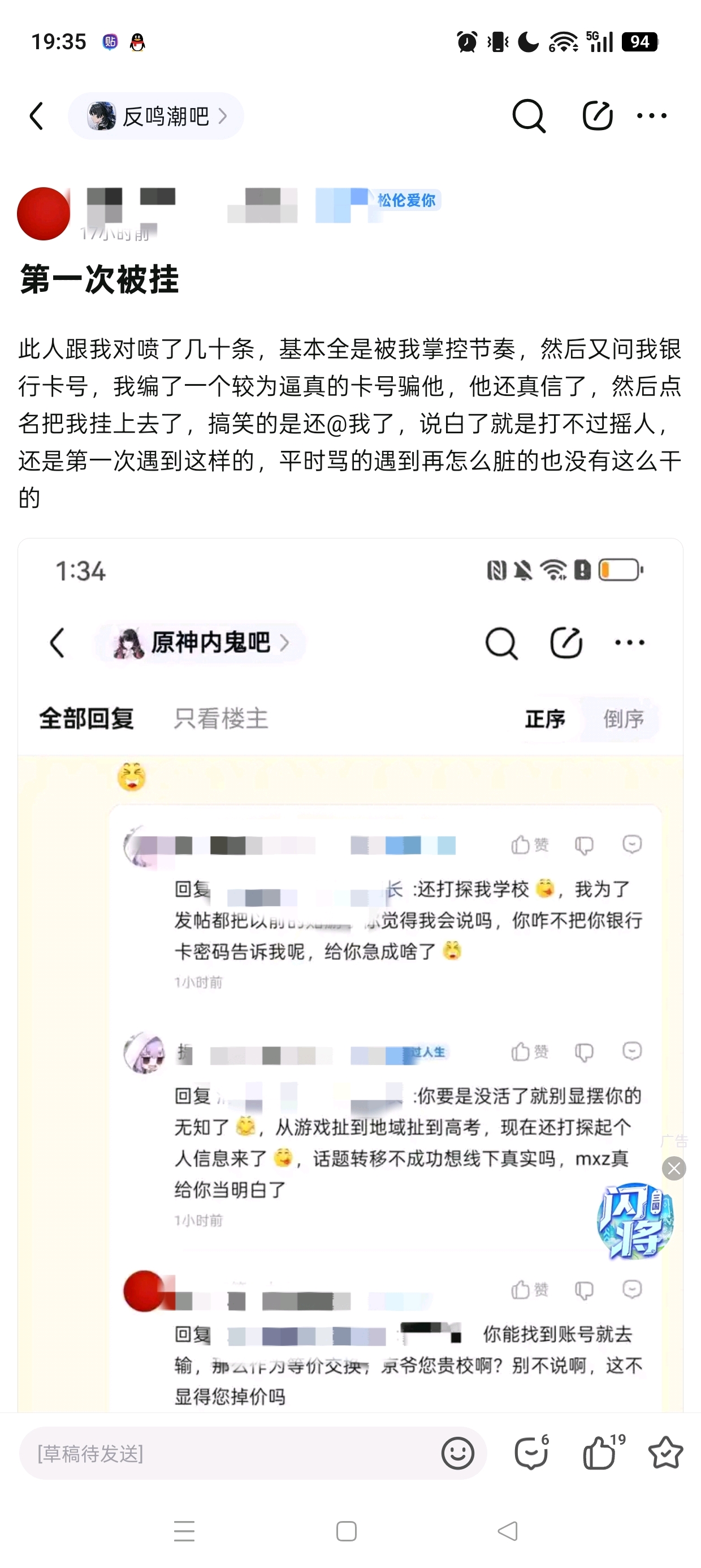 不过你发帖还专门跑到反鸣吧这种吧去发我不知道你是不是在揺人了