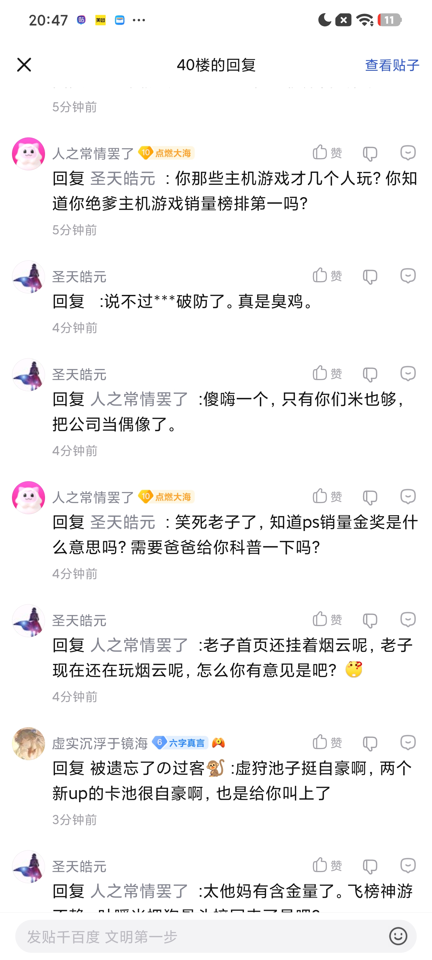 原神内鬼吧 myg认为绝区零吊打主机游戏,塞尔达给原神当儿子,燕云路边tid:104511335902026/02/01 21:06:0818797 11 0楼主:圣天皓元最后回复:laiquanzhong12 子不语11072026/02/02 16:04:341楼pid:1531540499062026/02/01 21:06:08圣天皓元 楼主 8级 原来米游这么强吗?好怕怕呀!主机玩家和switch玩家以后看见米游玩家都要鞠躬哦2楼2条pid:1531540749612026/02/01 21:13:56武天nose11级 鉴定为信息茧房+脑机接口患者yeerqiati3级 顶nai5com 白苦瓜cZbe03级 dd3楼pid:1531541157892026/02/01 21:26:28TheGhostWin10级 玩原神玩的4楼2条pid:1531541195482026/02/01 21:27:37火筱煭西瓜鲁斯王!1级 人公公是这样,流水吹的叮当响,氪金记录从未拿过出来圣天皓元 楼主 8级 我还以为这个吧都是串子呢,原来还有纯种米也够,这种纯度的米也够,就算米游巅峰也是佼佼者Sgnitfgbvdr8级 回复 圣天皓元 :感觉人公公还是像串的5楼1条pid:1531541446482026/02/01 21:35:05贴吧用户_G1X4S9y5级 总不能是纯的吧圣天皓元 楼主 8级 纯的纯的6楼pid:1531541479012026/02/01 21:36:00这尼玛的尼玛菠萝沙ó1级 20年原神的制作人还说原神技术力比黑猴子高呢7楼pid:1531542052362026/02/01 21:53:14杰庞顿奥特曼捷克顿11级 告诉这个低能儿绝区零ps金奖排名没有打过网易的漫威争锋8楼pid:1531542143752026/02/01 21:55:57杰庞顿奥特曼捷克顿11级 问一下绝区零主机销量第一的是哪个平行宇宙9楼pid:1531543018332026/02/01 22:22:10我勒个痘逗啊纯良萌萌人抓耳挠腮11级 你对线的这业够怎么天天给他跌瘤萎尽孝10楼pid:1531543480392026/02/01 22:36:09发哦规划丰寄哦椿龄无尽弦9级 抛去燕云逆天养成单论质量燕云大于卧龙大于所有二游11楼pid:1531544017122026/02/01 22:52:31光子yG喜欢伊蕾娜7级 不要你这种人,这种人纯粹的串子跟小学生一样12楼pid:1531544530672026/02/01 23:08:03膧暝1级 肯定啊,绝区零热度堪比黑神话最高的时候,单机有几个打的过黑猴的13楼pid:1531544562872026/02/01 23:09:03龍兒791级 印度神遊又在覺得自己是世界中心了是不是,真是死馮天天死,鬼仔天天叫14楼pid:1531544816552026/02/01 23:16:45经济不能盲目亚煞极ლლ10级 15楼pid:1531548463792026/02/02 00:57:32a836400581希娅汐汐呀1级 米耶种 本来就是一群没脑子的人 18楼pid:1531569122232026/02/02 16:04:34laiquanzhong12子不语11077级 MXZ是没有大脑的