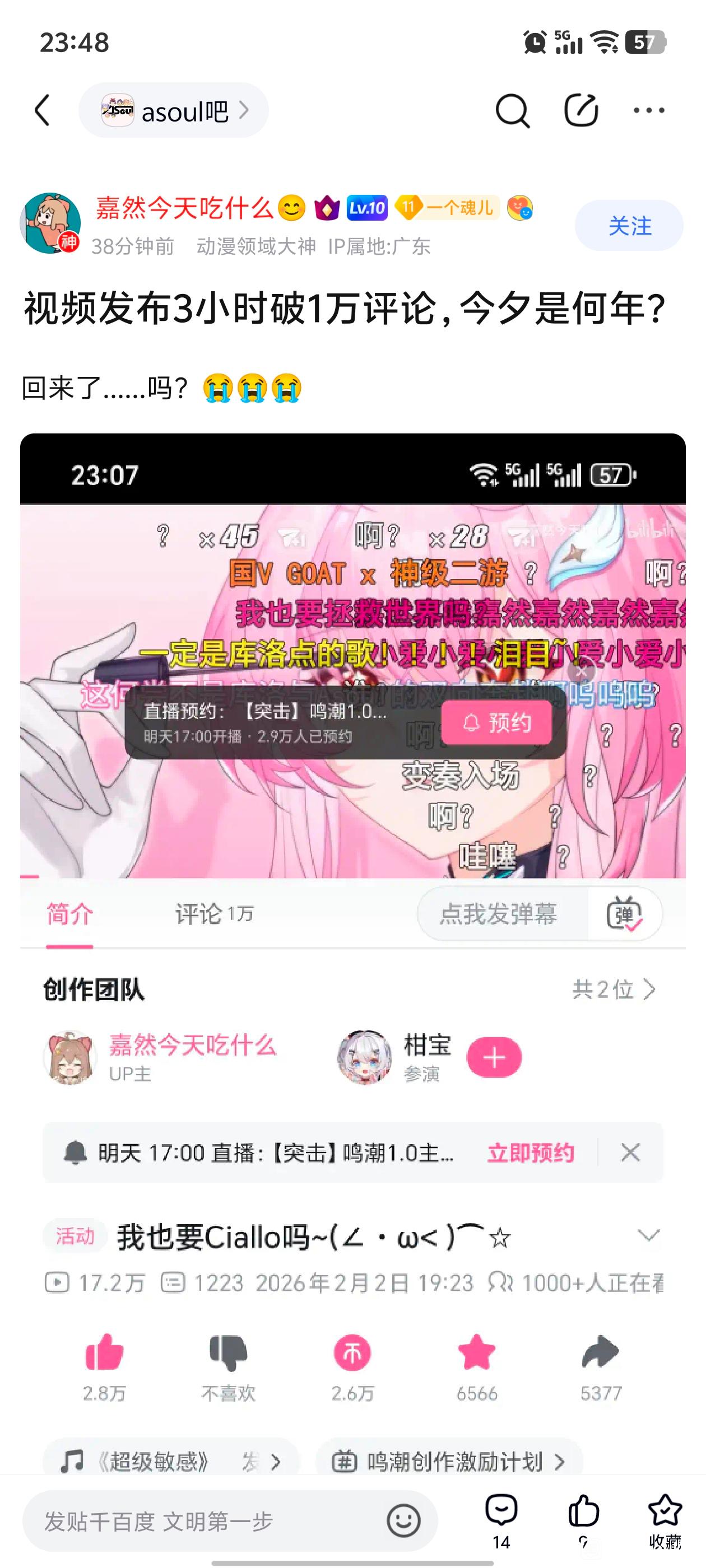 2楼3条pid:1531590868212026/02/03 07:23:56封我很有意思么嘉然今天吃什么😊11级 有没有可能470人的时候我就点了预约。有没有可能这图是我开小号来三连。有没有可能我大号刷了很多弹幕不好意思截图。易歌魂 楼主 7级 错怪你了封我很有意思么 嘉然今天吃什么😊 层主 11级 回复 相望不应迷 :没事,误会一场西子明暄8级 有没有可能a8就你们几个关注了的,其他人都巴不得a似