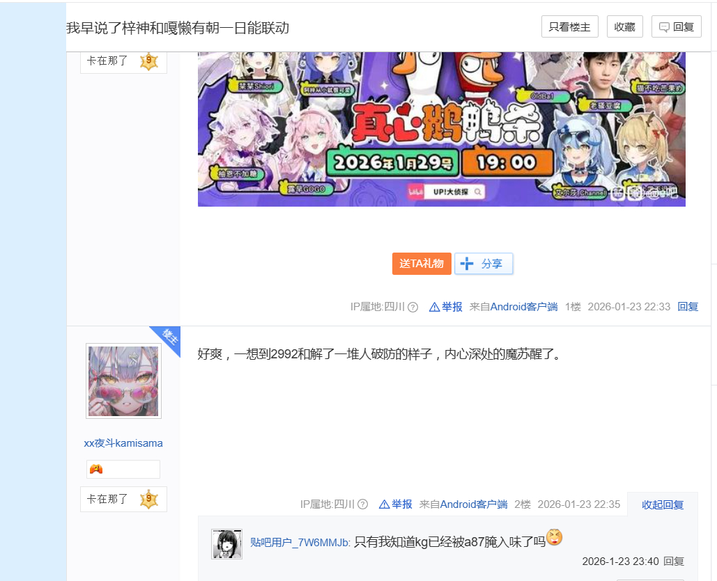aptx102540还是不要办这种联动了,不想在直播间看到一些难听的话。骂战起来之后asoul又要被某些人攻击,看得难受