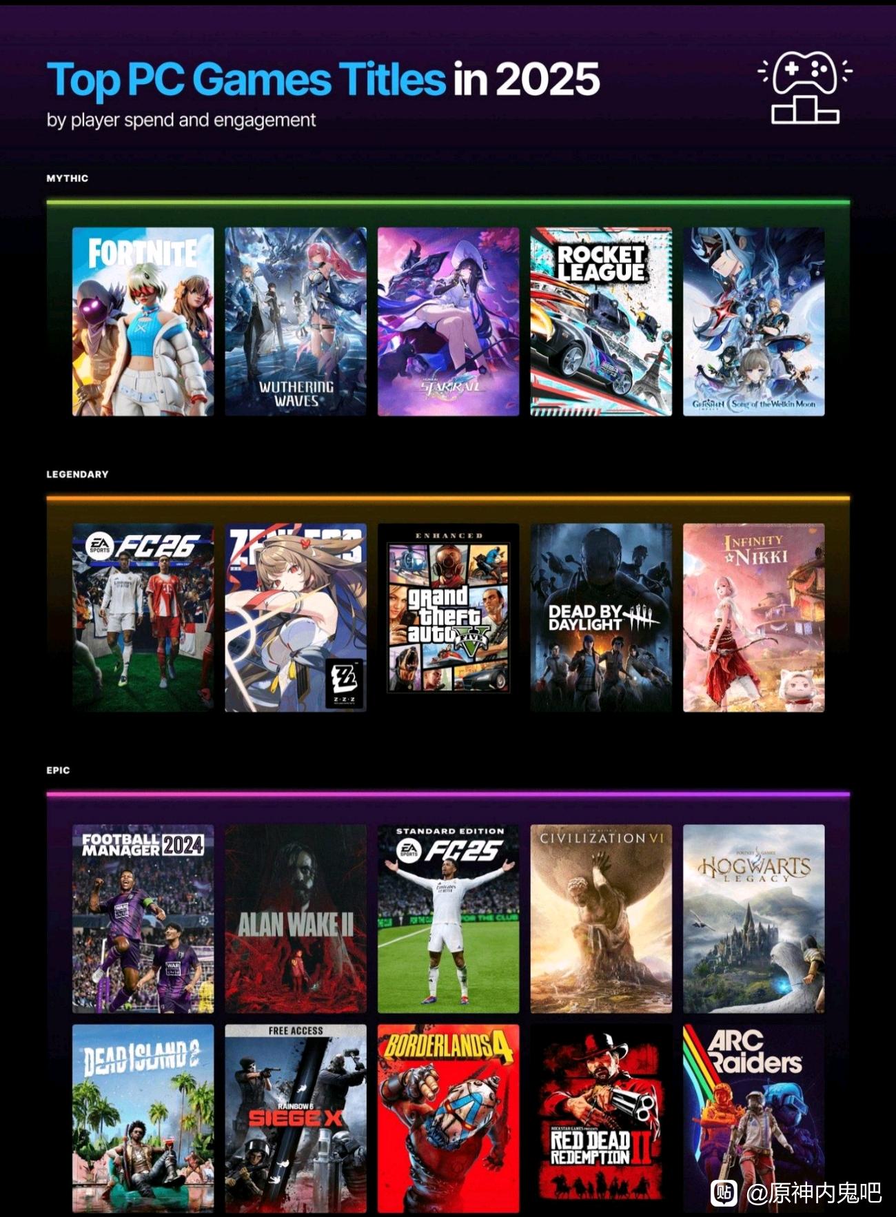 GTA5都没进神话级,鸣潮把GTA5挤掉了,无限暖暖跟GTA5一个级别,一看就是epic把虚幻引擎的鸣潮和无限暖暖给强推上去了