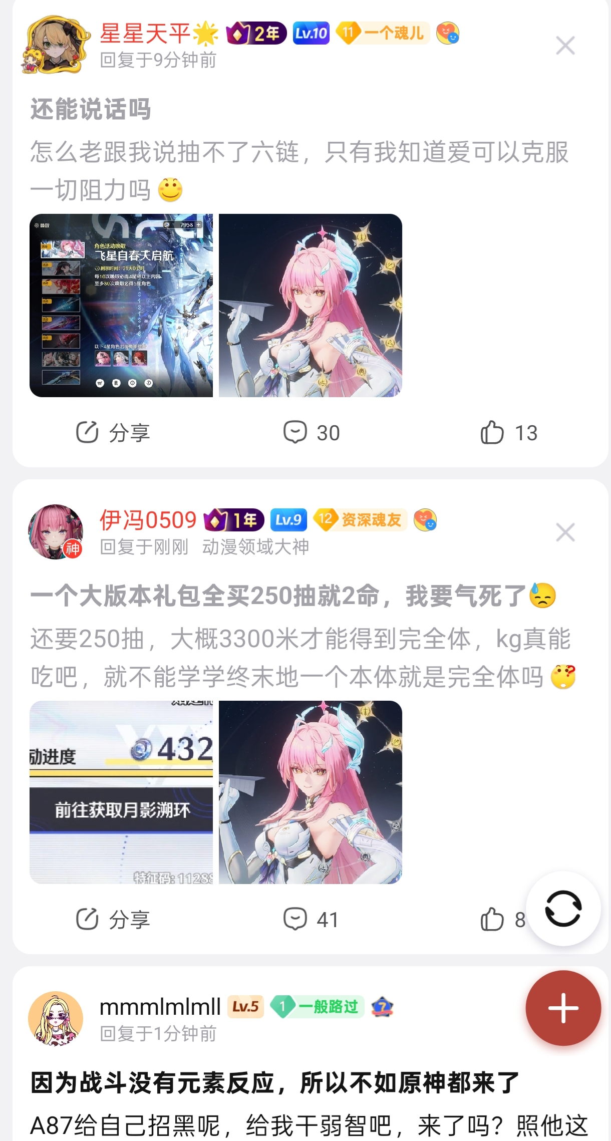 15楼1条pid:1531671288882026/02/05 11:16:55你放老子一码8级 。。。满命真随便打斯卡蒂307 伊冯0509 楼主 12级 所以要抽满命呐,问题3.0到现在的礼包全买加地图全清就250抽,还要冲3300才能满命,隔壁一个就是完全体