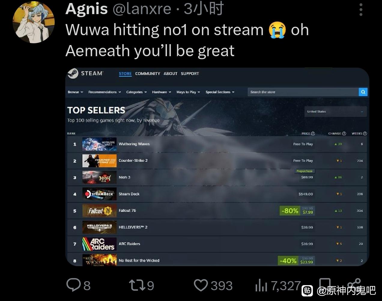 爱伤害后置没聚怪,加上鸣潮的角色有体力限制,相当于鸣潮的1金只能当原神的0.5金用,流水这么高已经不错了