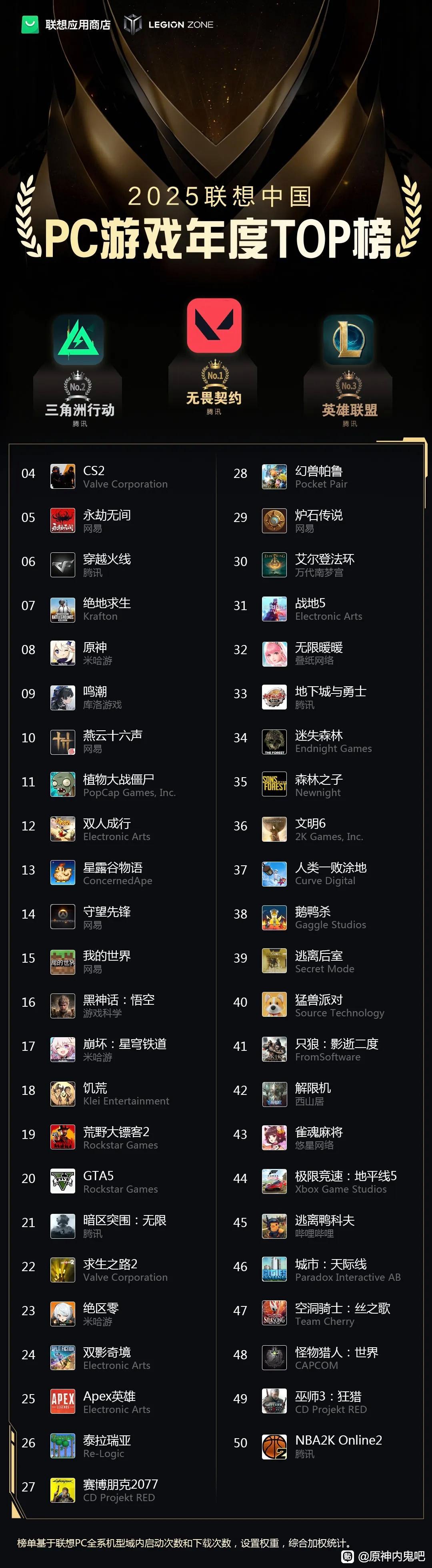话说联想拯救者榜是怎么统计的啊?它也没游戏平台啊?是在联想牌子电脑上玩就算吗