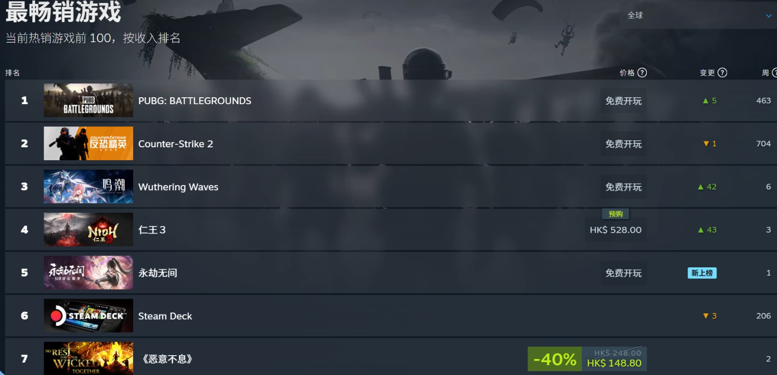 恶意不息最近新增50w销量,我也买了挺好玩的,把这个肘下来 steam榜确实很有实力