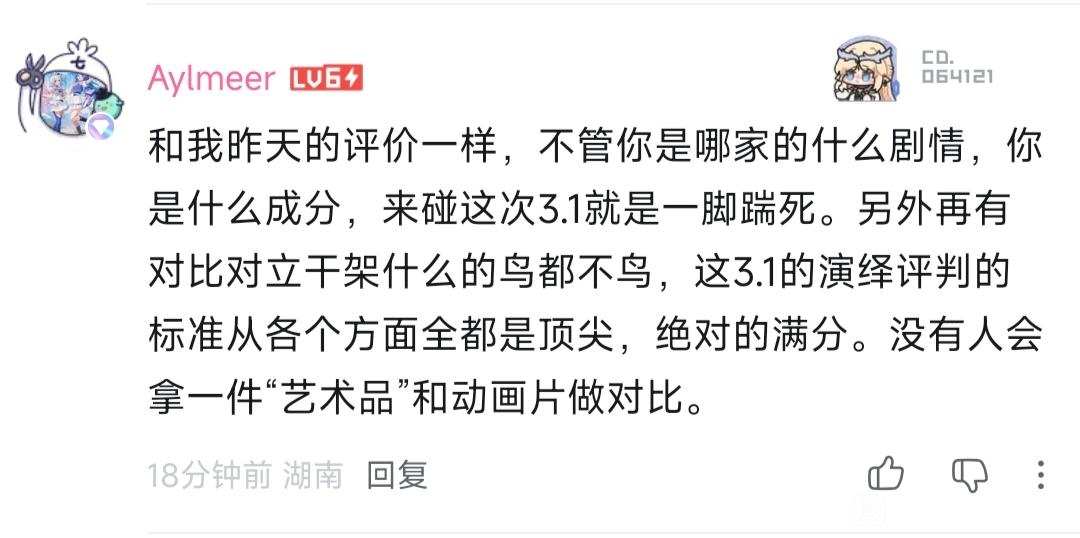 不错,3.1可以和诺德卡莱6.4主线竞争二游最强剧情了,你要知道挪德卡莱主线也是全网好评的。