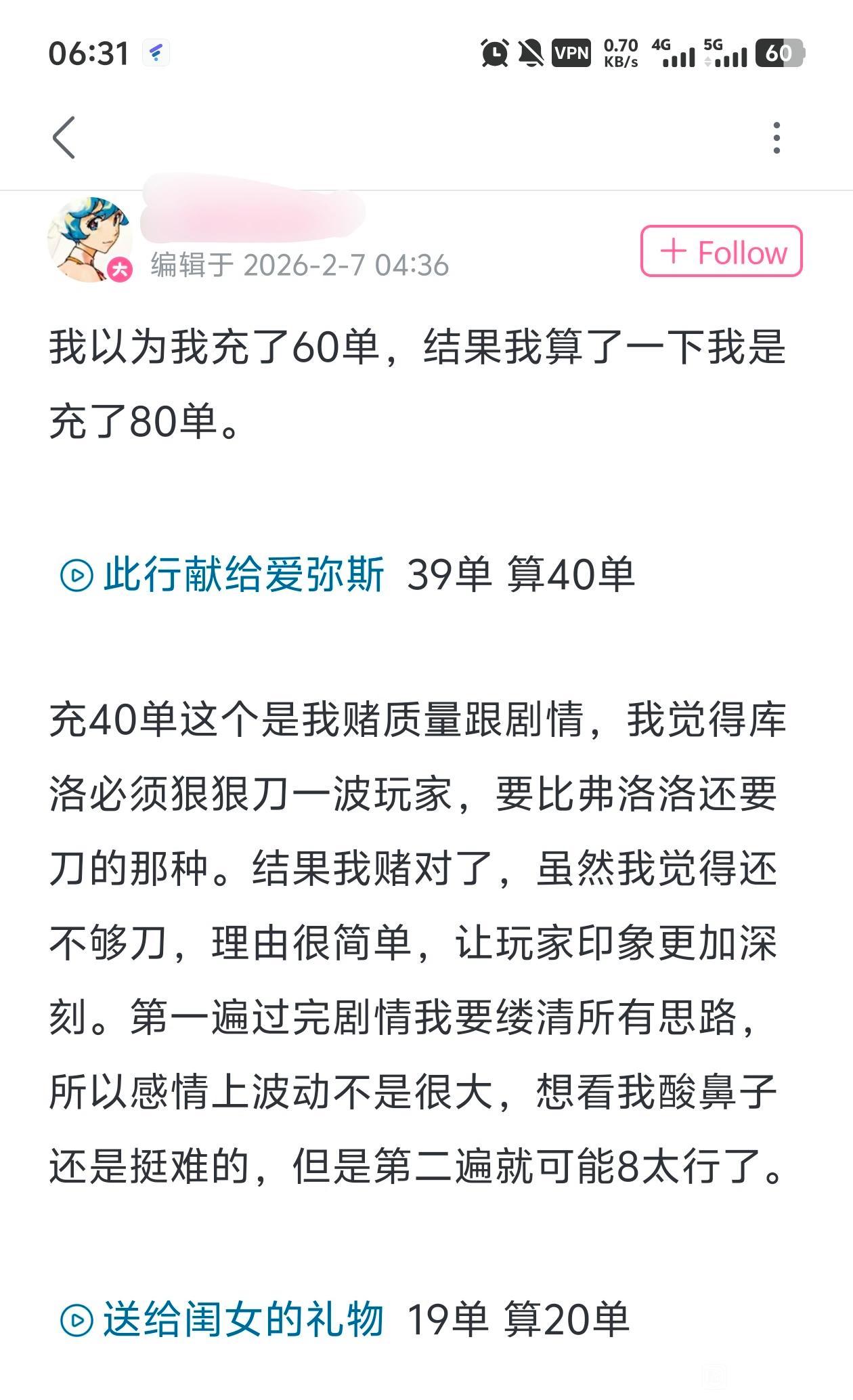 jy02749617他嫌一单一单充6480太慢了,提建议想搞个购物车批量买,然后库洛给他加上了,99.999%的人都用不上这功能