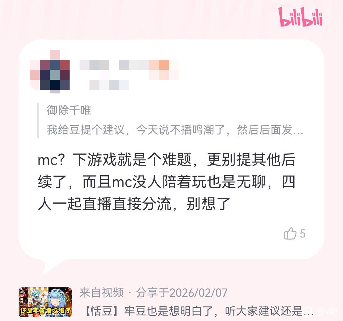 v吧 在安子评论区说话小心点吧!你豆神的大刀未尝不利😤tid:104692595722026/02/07 19:19:25413116 74 1楼主:怎么不正常了呢最后回复:迷茫时空 时空💦2026/02/08 05:46:391楼pid:1531759959622026/02/07 19:19:25怎么不正常了呢 楼主 11级 已诛杀二人😤想喜提拉黑的可以去安子评论区臊皮一下2楼2条pid:1531760082122026/02/07 19:23:35不再晚睡zzz临水照花🎭8级 这种最憋屈了,反正要被拉黑不如私信攻击宁王nb VIPER♋8级 我还好,主要那个老哥是32级牌子的,估计还上过舰这种是最难受的熱血灬戰魂 朝暮久且长º12级 回复 VIPER♋ :那个已经一年不看了 一点都不难受3楼1条pid:1531760094432026/02/07 19:24:01不再晚睡zzz临水照花🎭8级 哦对了,二子上号拉黑的,不关豆豆的事✋🏻莫木杺 少年的你就是到你家的8级 看看情况,节奏大了又可以从评论区抽个道歉文了4楼pid:1531760214042026/02/07 19:28:03怎么不正常了呢 楼主 11级 被拉黑的来报个到来5楼3条pid:1531760217492026/02/07 19:28:10熱血灬戰魂朝暮久且长º12级 我现在已经是看热闹不嫌事大了,臊皮可以提前把她拉黑,她就拉黑不了你了怎么不正常了呢 楼主 11级 先手这一块看那121381级 我就说v8能学到东西迷茫时空 时空💦1级 牛,想看了再解除拉黑吗6楼1条pid:1531760329082026/02/07 19:31:55宁王nbVIPER♋8级 1怎么不正常了呢 楼主 11级 🤣🤣🤣7楼2条pid:1531760330302026/02/07 19:31:58enkidu1106鲛绡透12级 闹麻了,不是豆姨自己犯🗡想去蹭一下?自己有阅读障碍心里没数吗?自己玩游戏什么操作心里没数吗?直播玩游戏没念sc同接多心里没数吗?有要玩鸣潮这个打算就是一个错,豆姨就继续做多错多就完事了🤣🤣🤣怎么不正常了呢 楼主 11级 豆能犯错但恬豆包不行😤enkidu1106 鲛绡透 层主 12级 回复 怎么不正常了呢 :拉黑速度还是太慢了,这得猴年马月才能到天下大赦环节8楼pid:1531760863402026/02/07 19:49:43帅人昌真挚又诚恳的旅人7级 我还以为是在豆姐自己评论区被拉黑的啊 原来是在安子切片下啊 这就有点敏感了9楼pid:1531760886072026/02/07 19:50:27axs233网友小a6级 不赖10楼3条pid:1531761060922026/02/07 19:56:27戏中的我在看戏糖糖小豆15级 她心里怎么挣扎的 真的想知道怎么不正常了呢 楼主 11级 鲨人还有啥挣扎的戏中的我在看戏 糖糖小豆 层主 15级 回复 怎么不正常了呢 :忘了 傻福是不会想这些事情的great坑神11级 11楼pid:1531761104242026/02/07 19:57:56刻反转11级 于是转身向米游走去豆神大大方方播原神吧12楼pid:1531761476832026/02/07 20:10:23木姬莹莹繁歌长生不老6级 我是纯良,我理解恬豆,这年龄播不了几年了,养老直播间,容不得尖锐的声音,万一破坏直播间氛围呢13楼1条pid:1531761505062026/02/07 20:11:22假日H假日假日13级 二子上号拉黑的怎么不正常了呢 楼主 11级 二子又干好事了😤14楼1条pid:1531761901182026/02/07 20:25:02TEXXX丶8级 其实大家错怪豆豆了,豆豆只是想跟随队长步伐罢了😞怎么不正常了呢 楼主 11级 这也要跟随吗😥15楼pid:1531763090012026/02/07 21:03:17_______风颜99🍀Caesar3级 敏感笑话,发是二子发的,删是豆删的,v圈吃瓜点赞,赞是二子点的,取消是豆取消的,特殊时刻的樱花照片,照片是二子拍的,仅体验是豆编辑的,切片拉黑恬豆包,拉是二子拉的,人放是豆放的(贷款中),总结二子全锅,豆一直再帮二子擦屁股,哎呦我 二子怎么这么坏,就可豆一人霍霍。16楼3条pid:1531763170482026/02/07 21:05:52Tymobetal梦觉12级 这评论也没多尖锐啊,牢豆现在一点人话听不进去么?怎么不正常了呢 楼主 11级 豆神杀红眼了Tymobeta l梦觉 层主 12级 回复 怎么不正常了呢 :不知道该说点什么,毁灭吧赶紧的累了😔富特高压 gtfd~R8级 富哥后台私信了吧豆神怕不是上次节奏后已经超级敏感了17楼1条pid:1531763475792026/02/07 21:15:29bjliangfangy6混沌精灵夏玻利利🔥12级 搞个自抽号抽个兹白玩原神吧bjliangfangy6 混沌精灵夏玻利利🔥 层主 12级 只要配队齐全,傻子都会用18楼pid:1531763517212026/02/07 21:16:46晚风贰号机晚风二号机10级 鸡19楼pid:1531763740542026/02/07 21:23:24方森岩林1级 我倒觉得这评论挺小心眼的,豆姨表态还是很和善的,我觉得起码比艾芽芽让人舒服20楼pid:1531764285432026/02/07 21:40:27餖1235103鉏子杰谢谢你(似了)12级 非豆也,二也!21楼pid:1531766016122026/02/07 22:33:48Faeral1级 二÷删的,关我豆豆什么事22楼pid:1531766030852026/02/07 22:34:15Faeral1级 二÷拉黑的,关我豆豆什么事23楼pid:1531766975922026/02/07 23:03:36楓之藝5261怡豆发芽了.11级 为什么直播间的粉丝越来越少了,因为都被拉黑了24楼pid:1531768116742026/02/07 23:39:38莫仁人11级 超级敏感25楼pid:1531768228812026/02/07 23:43:15宁王nbVIPER♋8级 不少被杀的估计现在还没反应过来