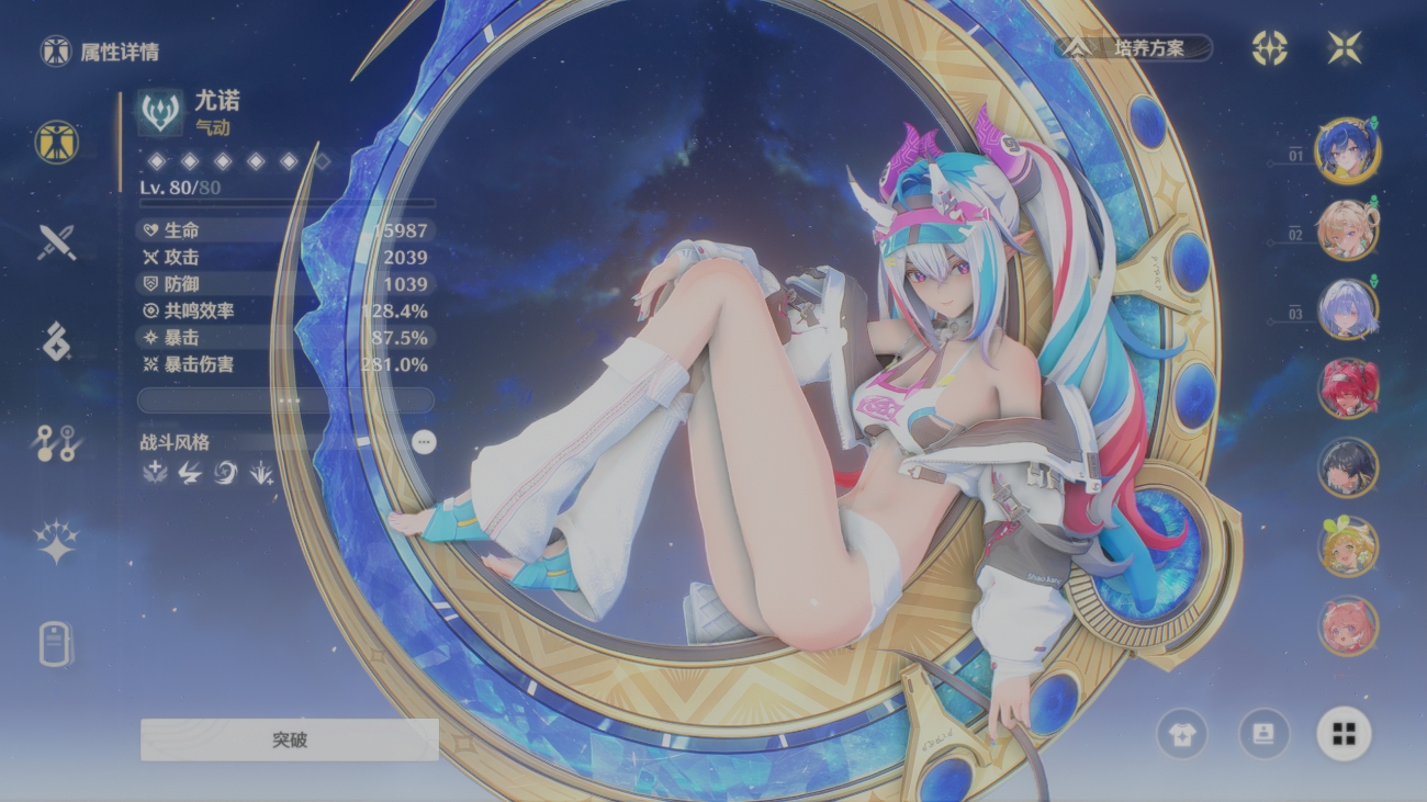 孤木桥 Style💦8级 大部分角色的词条优先级是 双暴>大攻击>共鸣效率≈xx加成>小攻击 共鸣效率达到满足条件后 xx加成>共鸣效率 你这个小毕业 如果要优化得奔着 三词条 双暴大攻 4词条双暴大攻 共鸣效率/共解加成 走 不过确实够用了 优化太麻烦