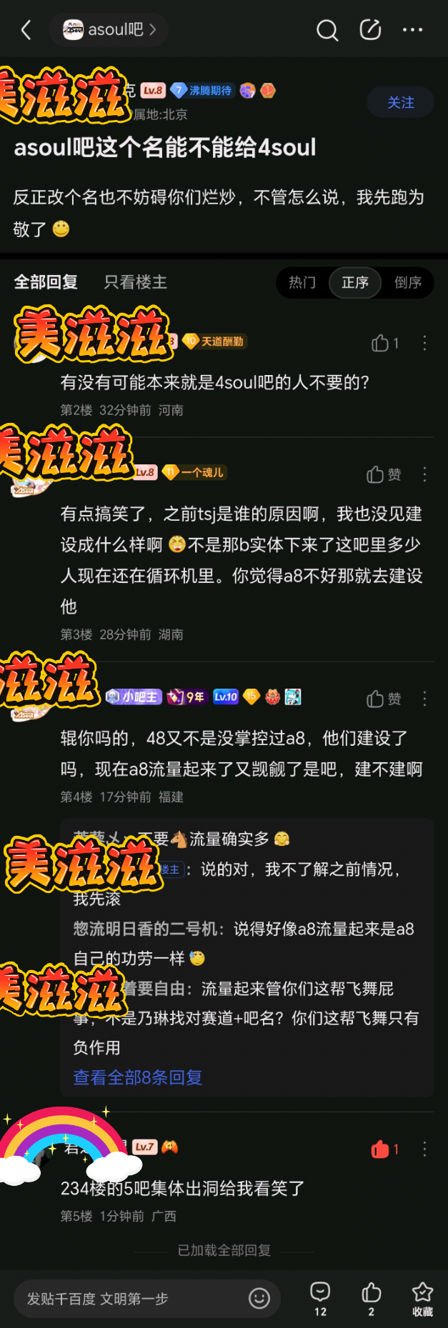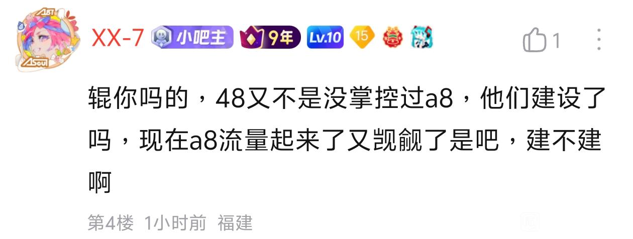宝宝_快哭 💤盖井小a8起死回生的唯一原因是它叫asoul吧,kg一搜名字直接出来就是这个吧,而不是因为你们这群烂炒沙软,少给自己贴金了- 48没建设,你们这群烂炒✔建设在哪了我请问