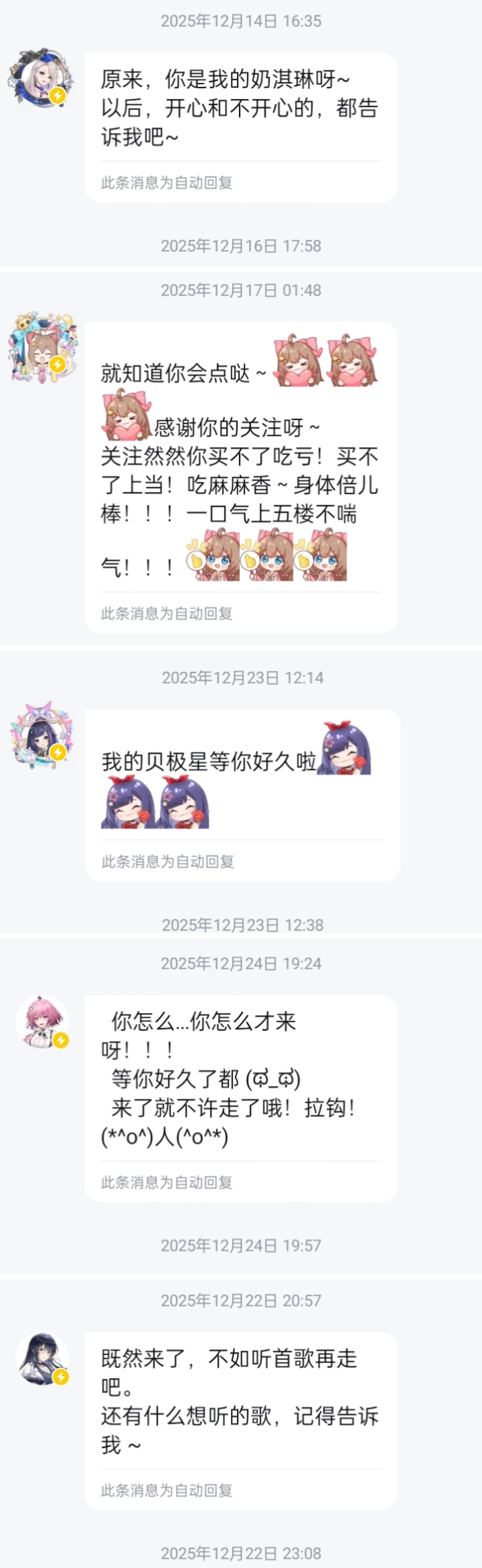 也就是此时,乃琳入坑了。也许刚开始播的时候还是有很多串子,但播几次后,kg们越来越被这个能够与剧情产生共鸣的小白毛所吸引。我是1.4椿伴星时无意中刷到的,之后乃琳的每一场直播都没落下,其余成员和二期忘了是什么契机关注的,但我是看了她们直播,才关注成为铁血团推的,看图2的关注时间应该也能看出来。