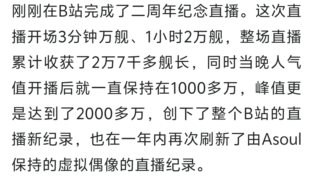 asoul吧 吵了这么久同接tid:104709253682026/02/08 12:05:25141565 3 0楼主:啊哇哇哇哇哇哇最后回复:莫仁人2026/02/08 17:01:501楼pid:1531782195832026/02/08 12:05:25啊哇哇哇哇哇哇 楼主 7级 有没有人告诉我asoul历史最高同接是多少2楼2条pid:1531782255172026/02/08 12:07:29a85640368嘉然最可爱😄12级 啊哇哇哇哇哇哇 楼主 7级 这也没显示同接啊scabc123vfg 猪猪公主の变奏诗篇8级 回复 啊哇哇哇哇哇哇 :贝拉最高直播预约快到20w了3楼pid:1531782386372026/02/08 12:12:01宫漫万岁空无物丶11级 无从考究,因为早期直播间最高只显示9999+4楼pid:1531782433422026/02/08 12:13:33尛梦桑kenlin9级 18w还是23w的,记不得了,因为之前b站过9999就不显示了,都是爬数据的5楼pid:1531782434292026/02/08 12:13:34醒醒吧这不是你小船静静往返-12级 据说是18万6楼pid:1531782782212026/02/08 12:25:16凤凰院LLLshamabuoke8级 至少18W。7楼pid:1531782848652026/02/08 12:27:30江湖老酒橘海蓝鲸8级 之前不显示,但是那几次万舰的时候同接肯定在10w以上8楼pid:1531783241462026/02/08 12:40:59神之忏8级 as不是底边😔9楼pid:1531783488072026/02/08 12:49:28橘子汽水咖喱7级 18w吧10楼1条pid:1531784114122026/02/08 13:10:16君焰龙泽kaima♤12级 无从考证,以前只显示人气。但是那次直播预约就有18w了,而且达到了2w7舰,我认为是肯定高于18w的某红白7级 预约如果有抽奖那真到不了18w11楼pid:1531786983272026/02/08 14:48:28笙影樱abandone11级 至少18w12楼pid:1531790792642026/02/08 17:01:50莫仁人10级 以前b站不显示