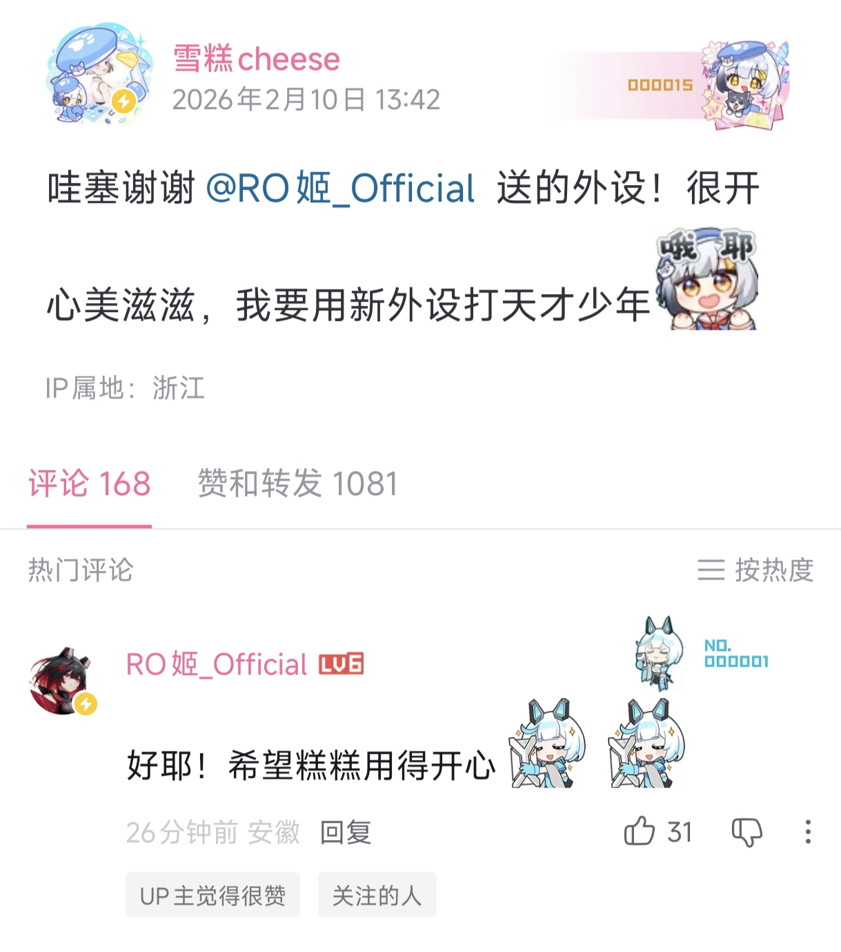 13楼2条pid:1531865684192026/02/10 17:54:43贴吧用户_JPbRASC1级 问个事那个装扮表情不是说卖2万份会动么,我看已经卖2万多了,我的大舌头什么动起来?虚无吞炎OvO 楼主 13级 好像说是今晚吧a1532739883 Sepsoh1级 说是今天晚上七点