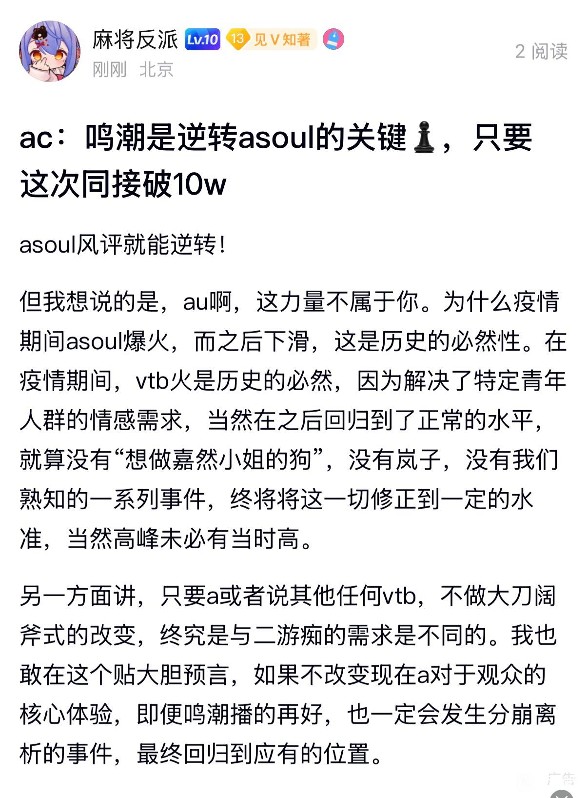 起始页v吧 灾夜聊:vtb中的历史观点tid:104780507652026/02/11 01:14:427881 5 0楼主:R闪杀你是失误 麻将反派最后回复:asdcv753 黑暗之土🌱2026/02/11 08:41:171楼pid:1531880024702026/02/11 01:14:42R闪杀你是失误麻将反派 楼主 13级 2楼pid:1531880303992026/02/11 01:26:28R闪杀你是失误麻将反派 楼主 13级 再说说为何两者无法调和因为本质上,二游主播粉丝一定是游戏>主播的,这点与a想要驯化粉丝有着无法调和的根源矛盾3楼pid:1531881030662026/02/11 02:02:37餖1235103鉏子杰谢谢你(似了)12级 饱暖思淫欲,先饱暖吧4楼pid:1531881168342026/02/11 02:11:30未闻花名2464向晚kiss☠️9级 没万象天引谁看ptg万象天引是引了一大批抽象粉丝,原本的v圈受众本来就不大,看这玩意的基本不是纯良mmr就是炫压抑猥琐**5楼pid:1531881191372026/02/11 02:13:10未闻花名2464向晚kiss☠️9级 给你云完了还改革,引过来的kg本来就纯良居多人家就乐意看幼教直播还指导上了6楼pid:1531882058492026/02/11 03:28:49大苏打大苏打85紫陌zpl5级 人饿的时候观音土都吃得下去,更何况鸣潮还是大白馒头。至于你说这白馒头里有没有放洗衣粉,拜托,就算放了也吃不死人,而且一定是能转化一部分成为能量的。7楼pid:1531884586402026/02/11 08:04:14大吊2017急急国王:)9级 无所谓了,分久必合,合久必分,a真要再次伟大,就得在多赛道发力,mc会是一个极好的支线,但是也就这样了,乃琳可以继续深耕二游,贝拉可以搞特摄和二次元杂谈,然然搞搞魂游8楼pid:1531885394232026/02/11 08:41:17asdcv753黑暗之土🌱7级 管他tm,先吧短期饭吃饱了再说