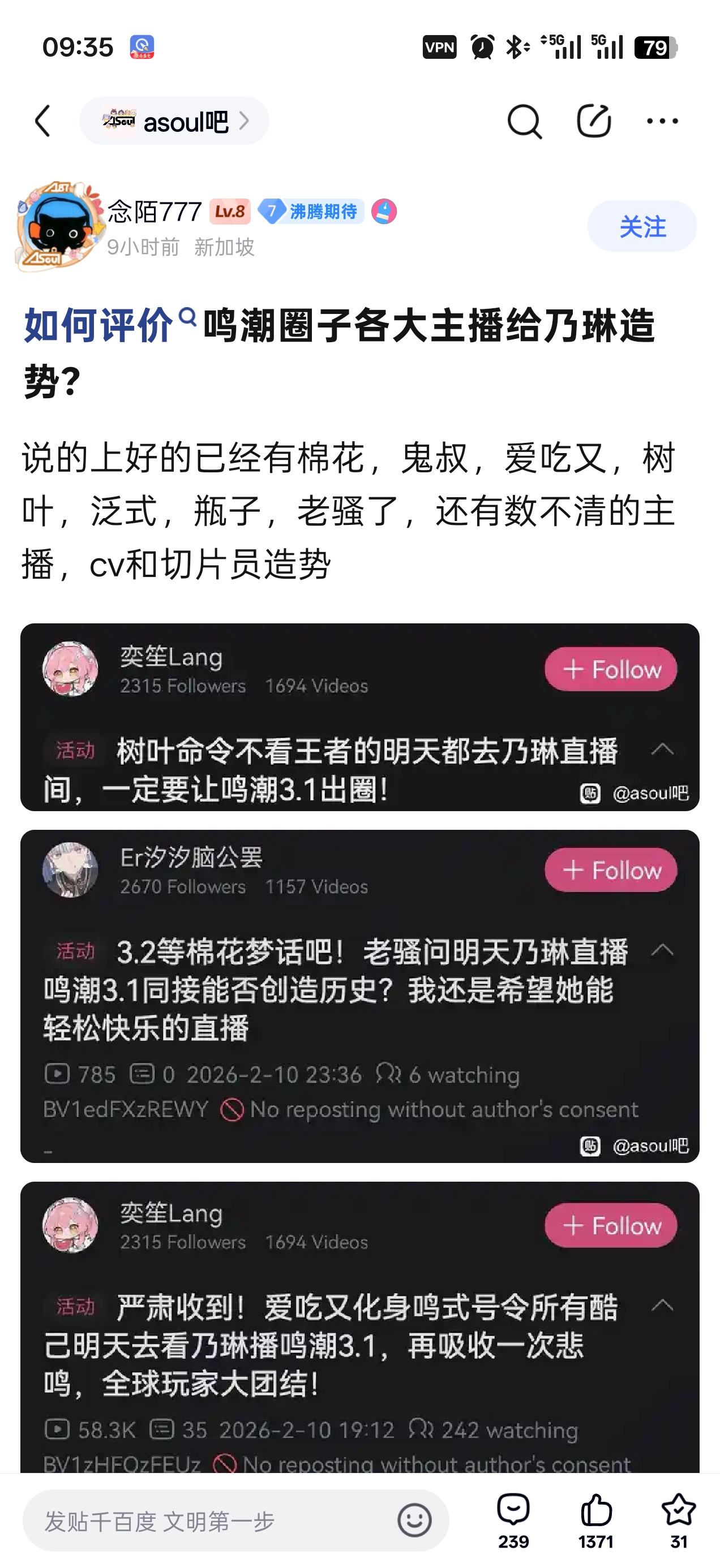 asoul吧 只有我知道是a87小心眼了吗,以为都像v圈和a87那么阴湿tid:104788404342026/02/11 09:37:314128 0 0楼主:1413057145 yh四麦最后回复:落辰子qaq 贴吧用户_JQDbeS42026/02/11 09:56:071楼pid:1531886911412026/02/11 09:37:311413057145yh四麦 楼主 12级 a87听令,楼下发给kg大人跪了,列队整齐,违者一天。2楼pid:1531887287172026/02/11 09:50:20scq403534134白樱14级 谁敢杀我3楼pid:1531887400602026/02/11 09:54:05azimadaimao9级 谁敢杀我?4楼pid:1531887438162026/02/11 09:55:18宇智波文波贴吧用户_G7XGDy49级 我乃九转巅峰 何人敢杀我 何人能杀我?5楼pid:1531887454112026/02/11 09:55:48Link莫说中二病中年心中立派13级 只有我知道阿楚之前引流都是谁点关注我给谁磕头吗,现在也成刚背兽了跪一下就行6楼pid:1531887464022026/02/11 09:56:07落辰子qaq贴吧用户_JQDbeS49级 谁敢杀我