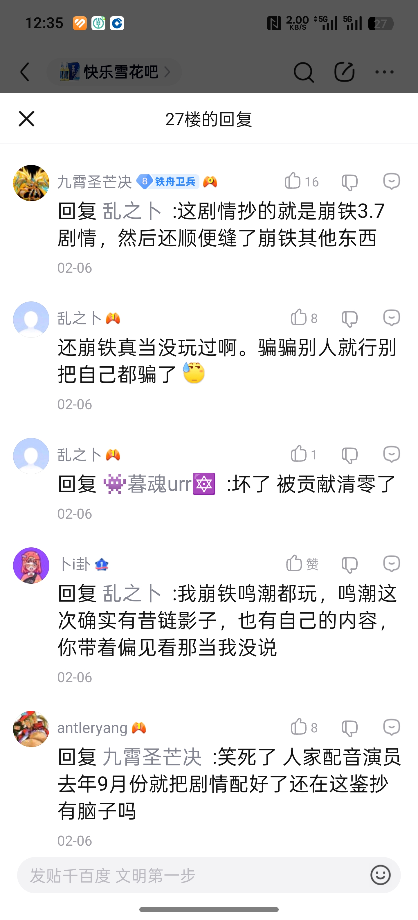 原神内鬼吧 快雪,新鸣,内爆,好像都觉得鸣潮抄袭崩铁tid:104793056812026/02/11 12:50:12203004 48 0楼主:TheGhostWin最后回复:贴吧用户_J7EGX5y2026/02/13 02:33:321楼pid:1531892922182026/02/11 12:50:12TheGhostWin 楼主 10级 这次孝子的话术怎么都是一样的🍬2楼pid:1531893125682026/02/11 12:56:27见习天使H骨钉挥得像棒槌一样10级 放个翁法罗斯严父在这里🤣3楼pid:1531893632862026/02/11 13:12:21逐梦457✨逐梦✨11级 本质都是一群人4楼pid:1531893684972026/02/11 13:13:52塔雏GUN陆永雏奶龙7级 小米粥香啊嗯造5楼pid:1531893732782026/02/11 13:15:26暂定www1级 感谢米圣开源🙏🏻6楼pid:1531893875622026/02/11 13:19:50CM_badFrost_Nova9级 觉得抄袭可以去走法律途径7楼pid:1531894199752026/02/11 13:29:46小白白天可我是模头大王11级 8楼pid:1531894613592026/02/11 13:42:58万事屋新明玲ガチ11级 很喜欢mygo的一句话,没告就是没抄9楼pid:1531894711212026/02/11 13:46:03Phoenix乱世派蒙!最好的伙伴!12级 大家的眼睛是雪亮的10楼pid:1531896593542026/02/11 14:47:56wuyaxungod刻晴马超玩家11级 甜甜甜11楼pid:1531897373462026/02/11 15:13:20勤仔要补拙4t1级 我们终将联合12楼pid:1531897913832026/02/11 15:31:04pareseo匿名用户1008668级 热爱终会合流13楼pid:1531898164822026/02/11 15:39:26songiam5级 两米粥夹脑机14楼pid:1531898696152026/02/11 15:56:43狂亲柚子大额头6级 唉,主要太若至了,我不和没玩过游戏的人辩论15楼pid:1531898792832026/02/11 15:59:54玩的嚎欣蕾啊🍭人真多10级 小米粥是这样的16楼pid:1531898830062026/02/11 16:01:09木板蓝根1级 因为大家都是在库骂mxz在米骂kxz17楼pid:1531901328762026/02/11 17:18:51qygfvgh无敌暴龙战神10级 梦魇轨子罢了18楼pid:1531909479622026/02/11 21:46:02来点萝莉1级 累充就不说了,频整器不是翻版?一样的抽卡副道具换,一样的随机,还不给你送两个19楼pid:1531911287192026/02/11 22:36:33待鸢尾盛开9级 mxz不赖20楼pid:1531911480582026/02/11 22:41:47节气门天枰7级 "统一口径"了呗,闹麻了。尼可还抄卡提动作。少女还抄尤诺锚定,米哈游真是库一儿21楼pid:1531914498902026/02/12 00:01:52兰鸢8凌子春11级 22楼pid:1531954040102026/02/13 02:33:32贴吧用户_J7EGX5y7级 我可不会玩那些走路慢吞吞,剧情角色没有表情运镜变化(即便剧情吹的再强),纯站桩PPT,没有主角塑造的游戏
