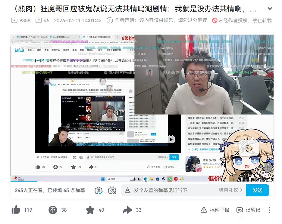 狂魔哥开团鸣潮,把鬼叔、棉花、爱吃又、乃琳全带上了。