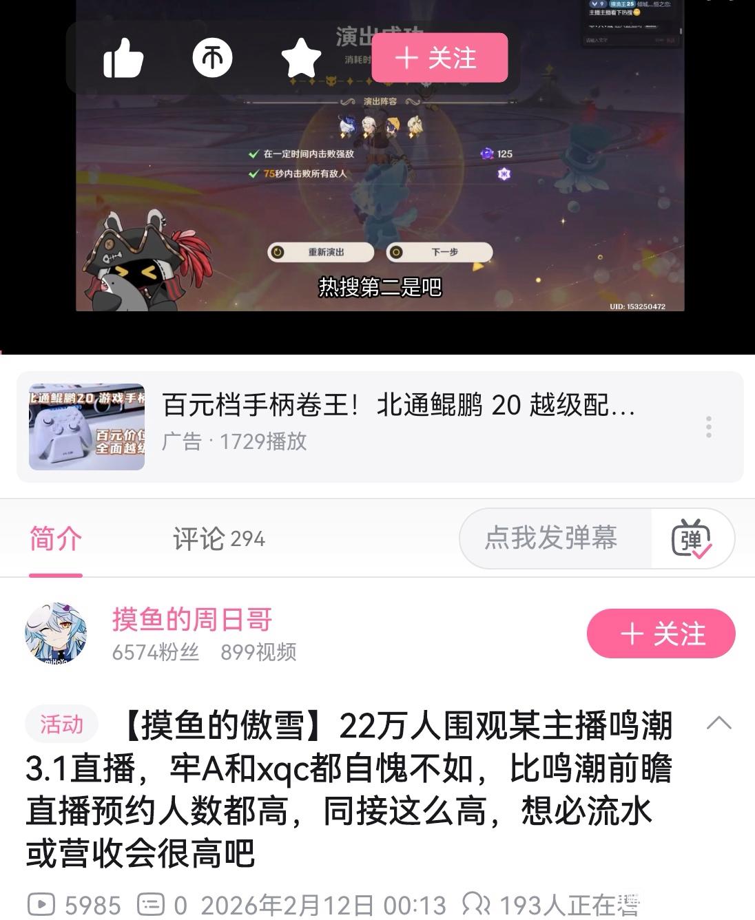你让结巴哥们玩鸣潮同接还能有2000你让他玩米游那2000都没有