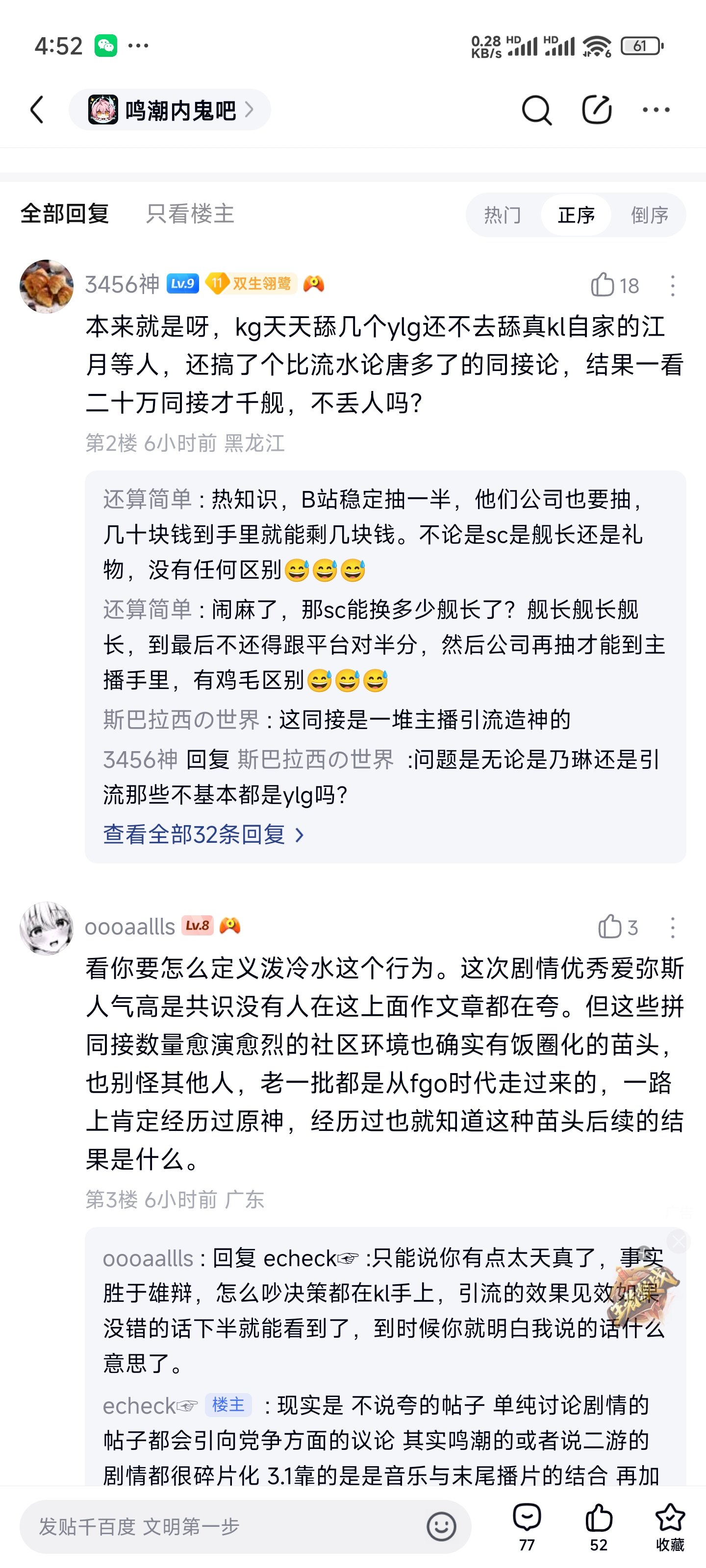 这就是为什么我说鸣鬼吧和新鬼吧现在本质毫无区别,一个纯新鸣野狗能在鸣鬼吧混到11级还能引来一堆人共振,且还不只是个例,或者说是海量个例,你猜为什么新鸣吧的人都喜欢来鸣鬼吧混,因为本质是一个群体,喜欢性别叙事,喜欢没坡硬滑,恨不得鸣潮死了他好给他爹尽孝