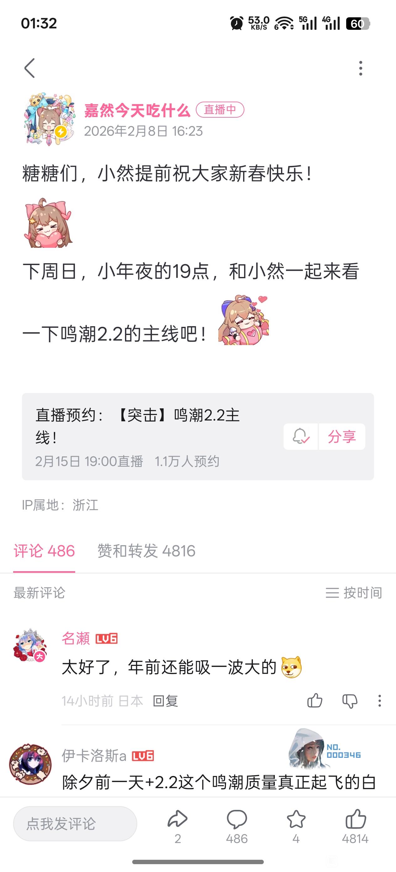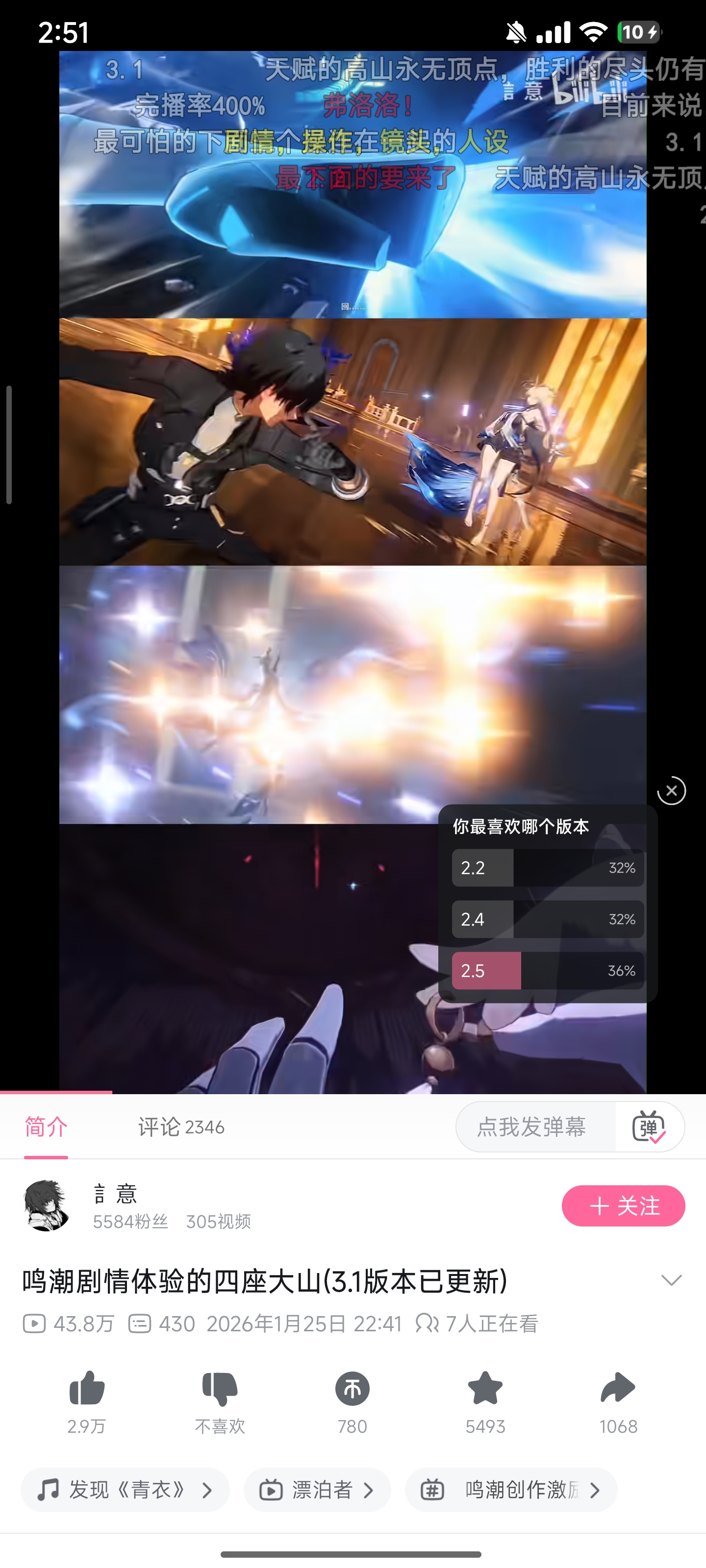 2.2节奏很舒服,而且你后面再高也是站在巨人肩膀上,因为2.2之前鸣潮没这么多人看直播剧情的