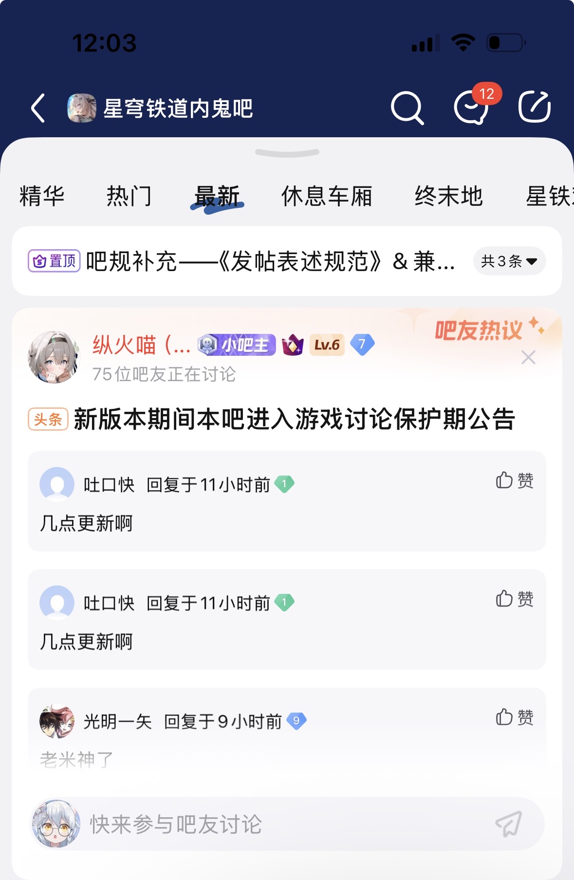 原神内鬼吧 我只见过国产电影保护月,没想到隔壁还有版本更新保护期tid:104846098812026/02/13 12:04:55162294 22 0楼主:万事屋新明 玲ガチ最后回复:贴吧用户_J27Q57R2026/02/16 17:41:381楼pid:1531963843982026/02/13 12:04:55万事屋新明玲ガチ 楼主 11级 2楼1条pid:1531963952272026/02/13 12:08:35djakdul千辉夜💫9级 隔壁一边吐槽kg多,让85禁鸣潮又舍不得那口流量,铁u什么时候这么不自信了,要相信只靠我们星铁一个游戏就能做大做强laiquanzhong12 子不语11078级 星鬼吃新鸣流量的,上次有人试过了,骂流萤被封,但是因为关注新鸣又解了,这吧的85纯🤡3楼3条pid:1531964268672026/02/13 12:19:10三月七今天吃啥四月七(休假版)12级 被崩铁男同踢出来的人,自己也开始玩权限了。屠龙者也成恶龙了昼歌行 秋雨明1级 宝宝你在隔壁被十循了吗,好久没见你说话了三月七今天吃啥 四月七(休假版) 层主 12级 回复 秋雨明 :我被新鸣骂跑了芙芙睡大爸上 我不是长离厨小吧12级 回复 四月七(隐身版) :宝宝抱抱4楼1条pid:1531964297072026/02/13 12:20:08点点滴滴刚刚79可爱滴涅10级 隔壁不一直是米娇妻吧?乖看恋0r4级 就你叫秀儿5楼pid:1531964712302026/02/13 12:34:12孤寡孤的海角𠱽藏9级 不然等轨子叠被kg踩成眯眼肿吗6楼pid:1531964734672026/02/13 12:34:59温情he11级 说那么好听不就是权限吗7楼pid:1531965234752026/02/13 12:52:27白金霸体贴吧用户_58aVZ1t6级 其实是被kg压着打,迫不得已让吧务救场8楼pid:1531965554882026/02/13 13:03:19元classd渊class7级 老米封禁内鬼之后,星鬼这些吧,热度暴跌了,很多帖子下都没几个评论9楼pid:1531970911262026/02/13 16:04:34亚当醬醬东陵老中医💫9级 一群米娇妻吧务看不得崩铁被骂10楼1条pid:1531977184302026/02/13 19:35:24愿热爱终抵群星冰清玉洁爱弥斯7级 没有,我在隔壁,还是很自由的驾照就考科目四10级 不骂他们米叠当然自由啊我骂了一下绝区零直接给我十循了11楼pid:1531982006732026/02/13 22:11:44步川川川川春禾火分7级 没有内鬼消息,星鬼这种上不去下不来的已经没啥用了12楼pid:1532014369512026/02/14 21:11:17芙芙睡大爸上我不是长离厨小吧12级 盐都不盐了