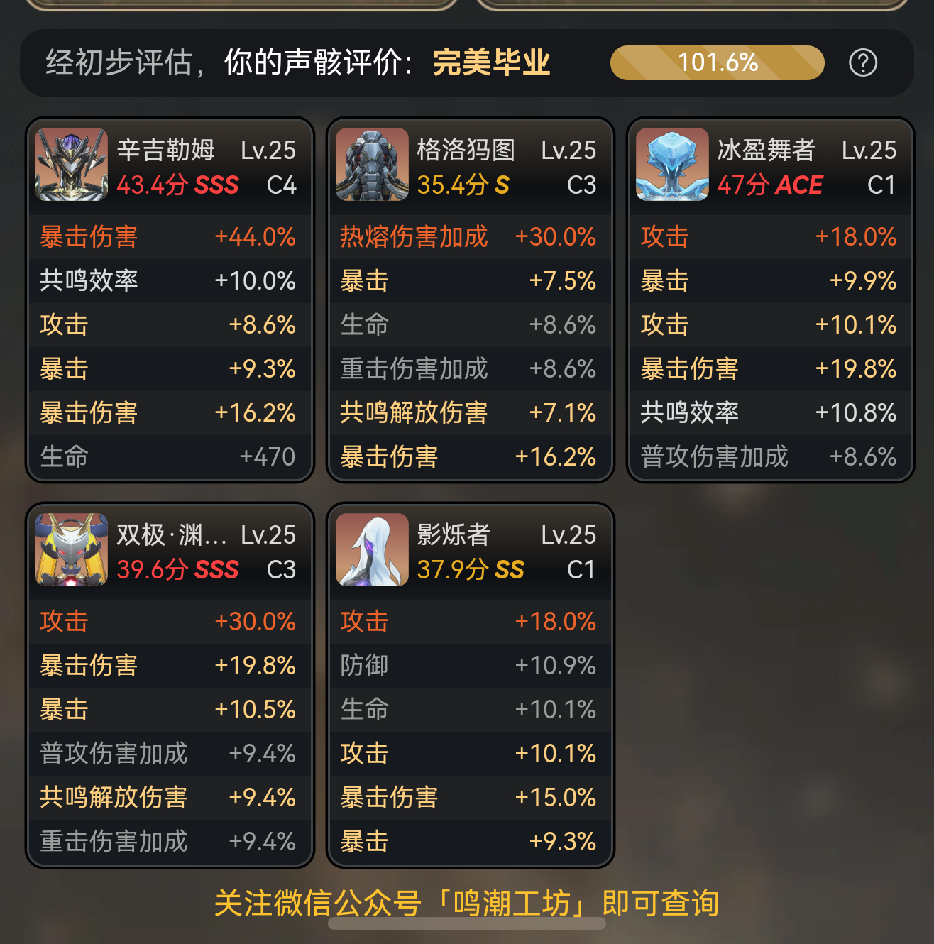 10楼3条pid:1531974529622026/02/13 18:03:34新时代抓龙股神贴吧用户_QQ1ZK7P1级 你要是冲4链,那就尽量往6链看吧,我就是搞了3+1,又打算满链的,4链效果全队加伤,其实也可以白雲丶葉孤城 叶孤尘 楼主 7级 你这声骸咋刷的啊,你暴击爆伤共效都比我高了百分之 10 以上,血还比我高了两千多新时代抓龙股神 贴吧用户_QQ1ZK7P 层主 1级 回复 叶孤尘 :没那么夸张吧,我每个声骸有效词条都不多,全靠调频仪,声骸图放楼下了回复 叶孤尘 :我是一火一攻