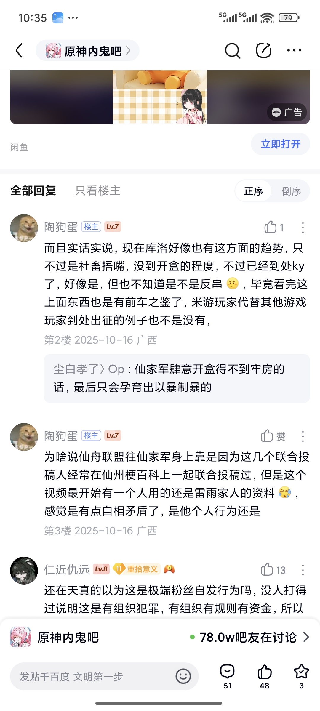 我当时能说出那样的话,是因为社区的高压环境,就比如现在的老婆党,女儿党不就是,这两玩意本质上就没什么冲突,但是现在冲突那么激烈,就是防止cp厨上桌,但是现在官号的评论区下面是个什么情况,应该都有目共睹