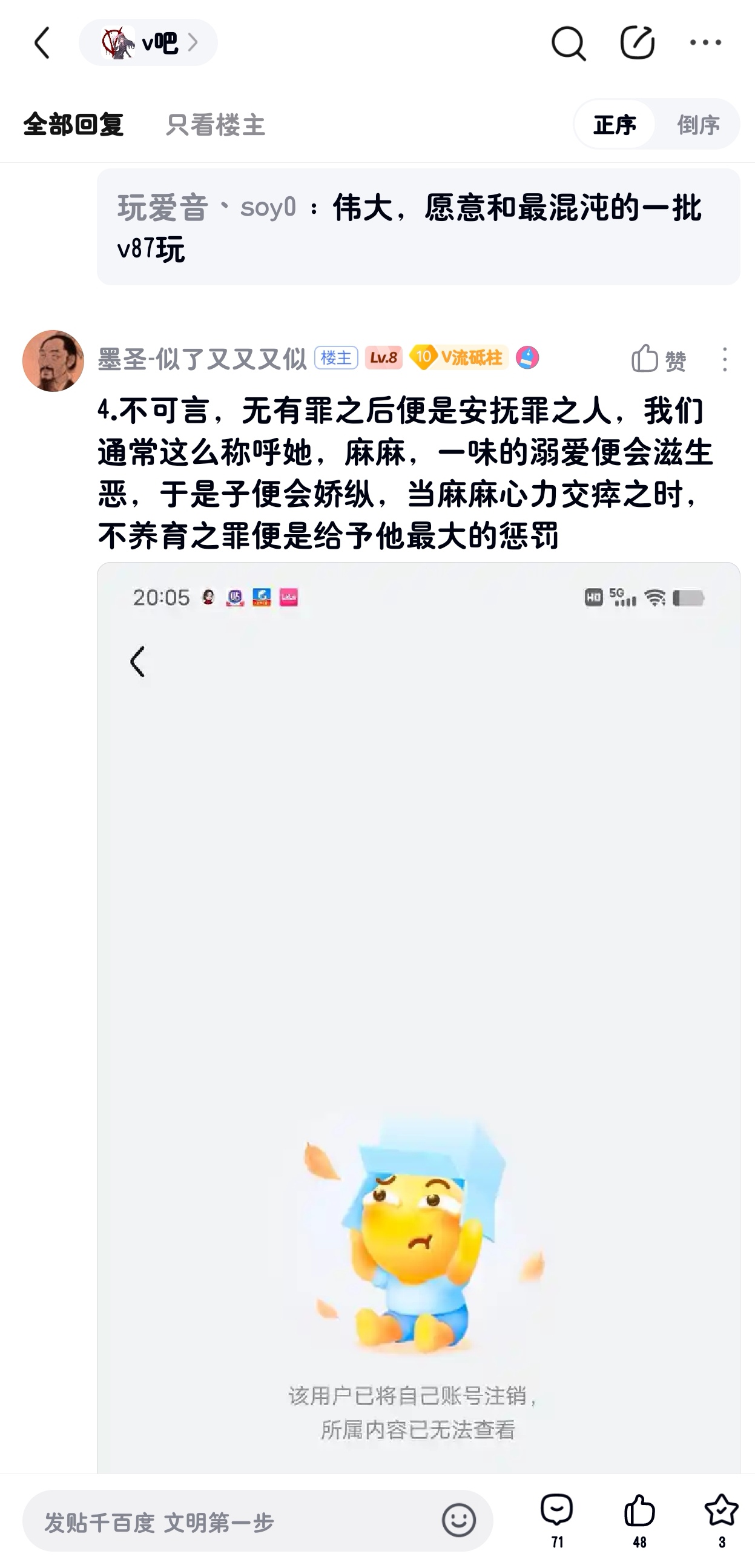 1楼pid:1531997704372026/02/14 11:29:22御坂美琴的迷别逗你豆姐笑了。 楼主 12级 看见v8十大罪人点进去还以为要说什么罪,结果,这不敢说那不敢说,简直是服务一个。你是不是被禁言了?史官 据事直书,一字不改。人家冒着掉脑袋风险都不怕。冰子的大刀还没落下来呢,你就这不敢说,那不敢说,唯唯诺诺,缩阳入腹。以前的v圈史官悠木皆守人家视频被举报多少次?私信成啥样了,还不是照样据事直书,一字不改。v8黄牌要是都你这样唯唯诺诺,v8早拿百度贴吧正能量贴吧的称号了想做史官,就要有被删帖的准备,再说了,删了你换个地方发不就行了,更何况还没被删呢😡 你都先跪下来投降了