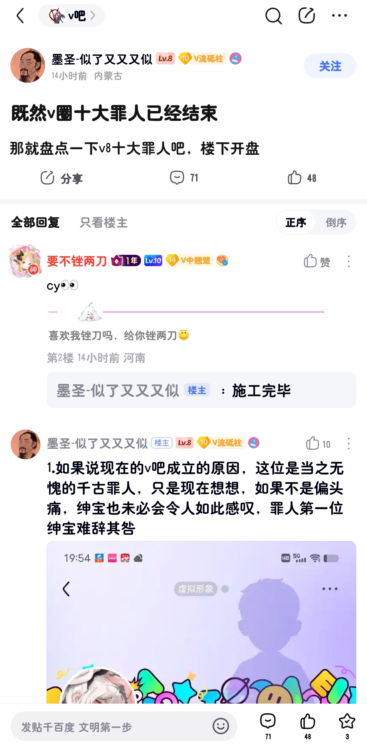 v吧 就这? 还做v8史官 别招笑了 现在v8新黄牌真不行tid:104871045302026/02/14 11:29:222291 1 0楼主:御坂美琴的迷 别逗你豆姐笑了。最后回复:风的雨666 夜鸫-2026/02/14 13:12:381楼pid:1531997704372026/02/14 11:29:22御坂美琴的迷别逗你豆姐笑了。 楼主 12级 看见v8十大罪人点进去还以为要说什么罪,结果,这不敢说那不敢说,简直是服务一个。你是不是被禁言了?史官 据事直书,一字不改。人家冒着掉脑袋风险都不怕。冰子的大刀还没落下来呢,你就这不敢说,那不敢说,唯唯诺诺,缩阳入腹。以前的v圈史官悠木皆守人家视频被举报多少次?私信成啥样了,还不是照样据事直书,一字不改。v8黄牌要是都你这样唯唯诺诺,v8早拿百度贴吧正能量贴吧的称号了想做史官,就要有被删帖的准备,再说了,删了你换个地方发不就行了,更何况还没被删呢😡 你都先跪下来投降了2楼pid:1531998693232026/02/14 12:03:57叫我老冰就好了【🧊】虚环加强阿梓吧主16级 他自己没编明白罢了3楼pid:1532000633452026/02/14 13:12:38风的雨666夜鸫-12级 感觉不如vz吧。好久没去过了,不过毕竟圈子就这样了