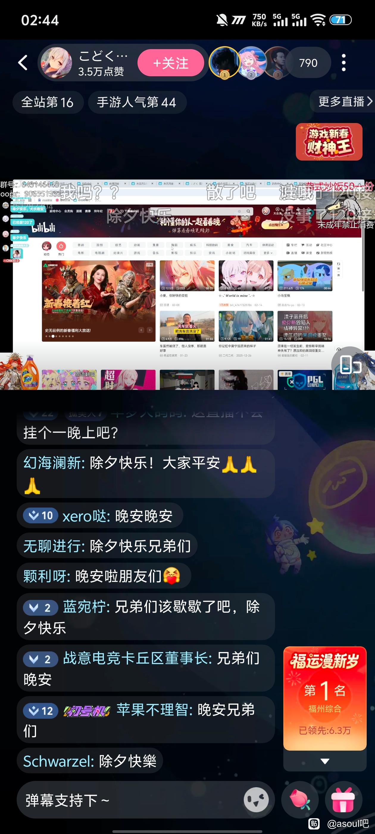 2楼pid:1532056556582026/02/16 02:56:08归去岚兮归柒岚兮8级 我刚好看了,主播兴奋型,过完剧情SC一搞就想哭,然后SC看发一个哭一个就更臊皮了,一直发加上他朋友也在搞他,只能说不是什么好事。等他明天消息