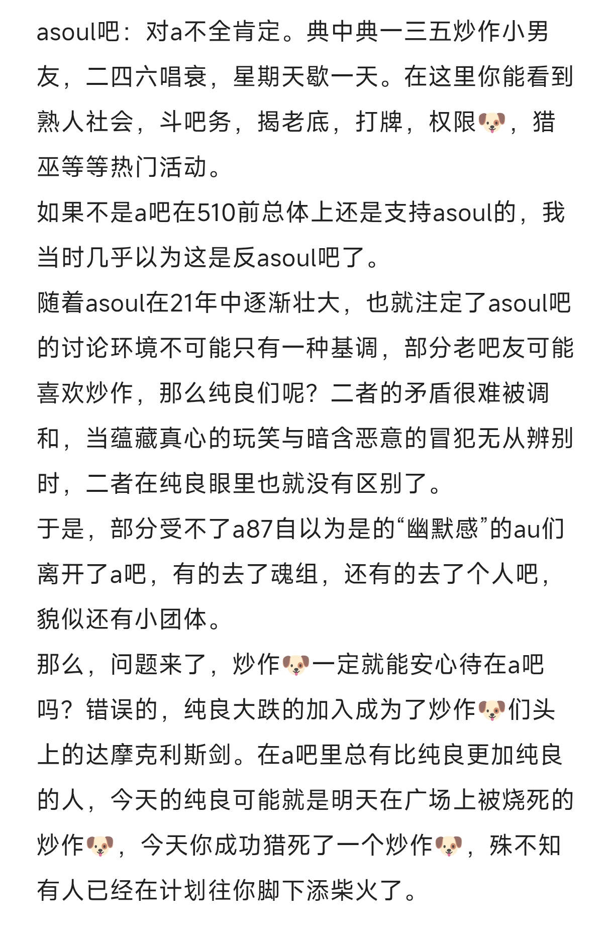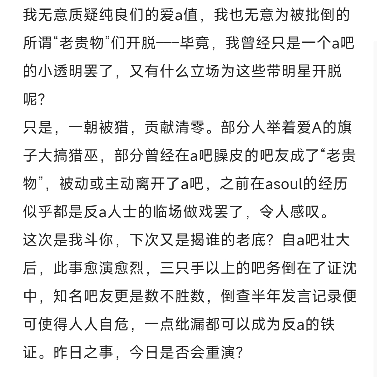 起始页asoul吧 一个帖子带你通关部分a系贴吧及团体,喝口奶,慢慢更tid:104911924992026/02/16 02:48:0515431 3 0楼主:枫林晚莞 小p爱指导😼最后回复:☆艾普希朗★2026/02/16 08:14:541楼pid:1532056472442026/02/16 02:48:05枫林晚莞小p爱指导😼 楼主 9级 纯文字被打回了,楼下放图2楼3条pid:1532056479232026/02/16 02:48:42枫林晚莞小p爱指导😼 楼主 9级 1,a吧彩笔一只啊啊啊 可乐喵小吧14级 历史还会重演吗djmaxkaka 苒味9级 爆了嘉然向晚suki 然小鹅小吧14级 历史总是在重演3楼1条pid:1532056515252026/02/16 02:52:10双鱼yuhaoyuhaoCcccu9级 楼主被呛死了————————————坟贴勿回————————————枫林晚莞 小p爱指导😼 楼主 9级 明天再更,困死了😫4楼pid:1532056539422026/02/16 02:54:28幻梦的次元星期五晚上☎7级 🎶除夕当庆贺💃💃走街串巷过🏃🏃🎉🎉🎉🎊🎊🎊🎶除夕当庆贺💃💃知足更常乐🥰🥰🎊🎊🎊🎉🎉🎉🎶除夕当庆贺💃💃能与你度过😘😘🎉🎉🎉🎊🎊🎊🎶这团圆时刻💃💃年夜饭摆一桌🍲🥗🎊🎊🎊🎉🎉🎉🎶除夕当庆贺💃💃腊梅照春色🌲🌺🌲🎉🎉🎉🎊🎊🎊🎶除夕当庆贺💃💃守岁望烟火🎇🎆🎊🎊🎊🎉🎉🎉🎶除夕当庆贺💃💃与你游铜锣👯👯🎉🎉🎉🎊🎊🎊5楼pid:1532056544552026/02/16 02:54:59图图你快点爬啊火拳阿格尼🔥小吧11级 i know who you are,i am watching you👁️6楼pid:1532056975832026/02/16 03:41:27芙芙睡大爸上我不是长离厨9级 gkd7楼pid:1532057326542026/02/16 04:28:55枫林晚莞小p爱指导😼 楼主 9级 8楼pid:1532057390122026/02/16 04:39:05枫林晚莞小p爱指导😼 楼主 9级 2,豆瓣魂组,不太熟,世间了一次就卸载了9楼2条pid:1532057441212026/02/16 04:47:34枫林晚莞小p爱指导😼 楼主 9级 3,战斗吧歌姬吧明月焕____ 若智如初见💫小吧13级 byd姬吧养了一堆纯良大叠开a8,我对他们的梁木永远不会消散🤮嘉然向晚suki 然小鹅小吧14级 京汉共振地10楼pid:1532059243002026/02/16 08:14:54☆艾普希朗★茄皇泡面7级 现在除了a8外只需要介绍3个吧就够了,其余的tsj就别说了4soul吧:510时期au们在大逆风的舆论环境中吹响反3号角的gm根据地,神中神5soul吧:套盾3/聚集地,💩中💩战斗吧歌姬吧:真正的a8,对a高米线极其友善,神中神
