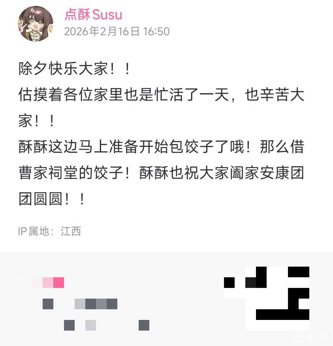 v吧 现在我爱看的V里面,除了小柔都祝我春节快乐。tid:104927713202026/02/16 18:05:266443 2 0楼主:樱游诗人 奔驰的回忆2000最后回复:冰坑王座 中东部情绪2026/02/16 19:33:131楼pid:1532074032262026/02/16 18:05:26樱游诗人奔驰的回忆2000 楼主 10级 V87你们说,我今晚能等到小柔的祝福吗2楼pid:1532074977202026/02/16 18:43:23亦有个某某_亦有个某某😚13级 辽宁ip指定有说法,从我进吧就见你发小柔,小洛发梨3楼pid:1532075768552026/02/16 19:13:48相遇以及伙伴们 星野アイ12级 柔宝是要祝lunar new year快乐的4楼pid:1532075821542026/02/16 19:15:52一只龙龙龙猫龙龙龙猫11级 辽宁都是这么深情的吗😭5楼pid:1532075876422026/02/16 19:17:54ztls1234种田(不吵架版)15级 她不跟你说 她心里有你6楼pid:1532076249192026/02/16 19:31:43精神愉快生冷派高度盖然杏14级 良いお年を!🫡7楼pid:1532076289732026/02/16 19:33:13冰坑王座中东部情绪11级 如何评价?