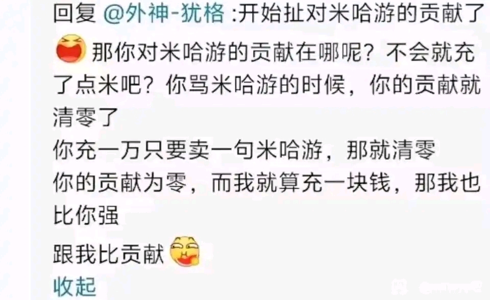 起始页原神内鬼吧 氪佬是最大的负资产tid:104931060232026/02/16 22:11:20191431 10 2楼主:Fire魔腾 拉海洛第一深情最后回复:贴吧用户_J25bDyE2026/02/18 06:00:051楼pid:1532080897952026/02/16 22:11:20Fire魔腾拉海洛第一深情 楼主 8级 震撼首发 何意味啊2楼pid:1532081419262026/02/16 22:28:53栋栋2024栋栋19909级 这段话术,咋这像辣仙的话术3楼1条pid:1532081434422026/02/16 22:29:24罓优ミカ_11级 想毁陪D4级 落地成盒4楼pid:1532081880002026/02/16 22:44:56驾照就考科目四10级 5楼2条pid:1532082557612026/02/16 23:07:30李宁誉tyty学长爱开人一口9级 和原神的老玩家是原神的阻碍一样的话术鸣鬼八是不是被myg入侵了wdwcpu12级 鸣鬼被myg入侵了,那本原神内鬼吧算是什么情况?李宁誉tyty 学长爱开人一口 层主 9级 回复 wdwcpu :你都黄牌ldx了,就不用反问我们了7楼pid:1532085590202026/02/17 00:48:39好渣人Carte之桂冠8级 鸣鬼吧,那就不奇怪了,那就不奇怪了8楼2条pid:1532086781692026/02/17 01:38:323V3唉唉我爱芙宁娜大人12级 酷狗别这也偷mhy的轻语木棉 您是否清醒9级 这人不是也被贡献清零转鸣潮了吗贫僧丶至此化缘 丶七夜丶6级 跟我比贡献9楼pid:1532088727332026/02/17 04:54:49破天期老怪物破天期老怪14级 你要不看看他的ID?10楼pid:1532089015592026/02/17 05:52:00贴吧用户_JUNGyZR6级 细节工单仙人11楼1条pid:1532089524072026/02/17 07:07:44玩的嚎欣蕾啊🍭人真多10级 笑点解析:这人id叫串子听心缘c3级 赞樱落学姐1.3.03级 等一个答案12楼pid:1532091303822026/02/17 09:09:50攻略中的鬼神11级 开团老登已经成为游戏发展的最大阻碍,建议去b站看看经典大作复习一下13楼pid:1532095416502026/02/17 12:04:04wz2002Reim出雅典记🌕5级 符合id14楼pid:1532118665812026/02/18 05:50:24岷叔爱你rn16级 恶意氪金