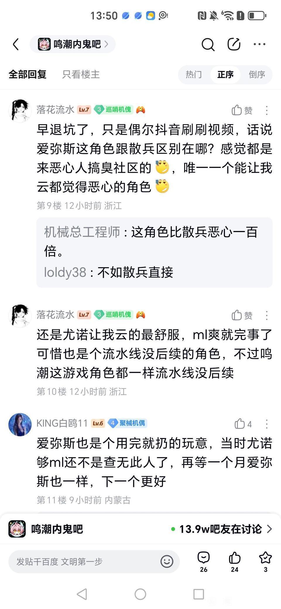 10楼2条pid:1532102259752026/02/17 16:51:06藍二乘凡妮莎_9级 步川川川川 春禾火分7级 还有他天后 大是大非😢5级 那个时间点鸣鬼还勉强算中立,我那会儿还觉得中立贴吧弄这种其实也还好,结果后面估计是把纯良的恶心走了又把新鸣米游的引进来,直接弄成现在跟米系贴吧没个两样了