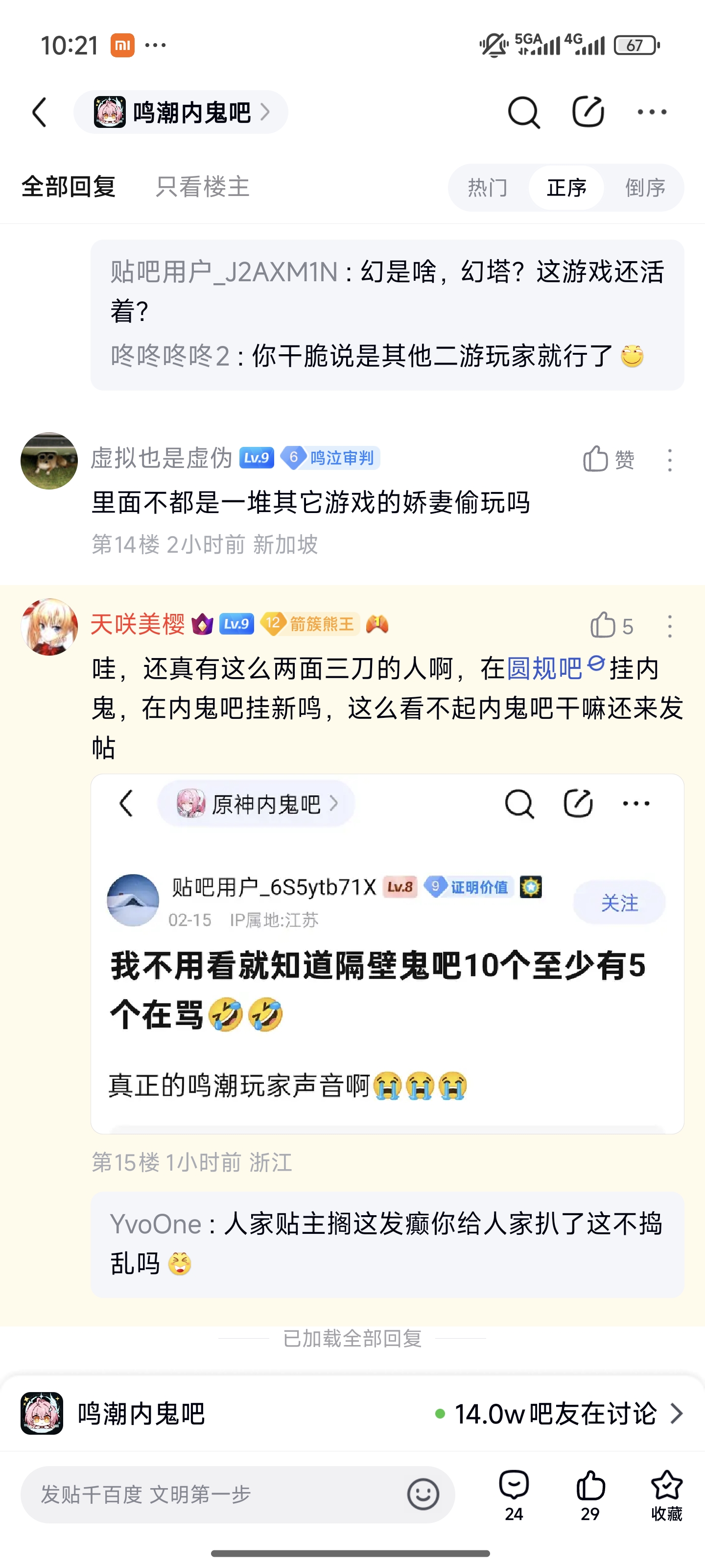 7楼7条pid:1532123036362026/02/18 10:36:11天醒临觉樱天咲美樱1级 年初二给你打出超击破了真是果咩捏就算大过年的也在坚持社区斗争的你真是太努力了,还是得跟你说一句新年快乐。另外蓝牌就别搁这岁月史书了,我混内鬼是爆孝跟新鸣都还没成立的时候的事情了无梦追逐 贴吧用户_6S5ytb71X 楼主 9级 妨碍你现在是新鸣椰果的事实吗鸣潮内鬼吧,喜欢在剧情没上线的时候就滑坡带节奏,出了事又装死,这点能洗吗天醒临觉樱 天咲美樱 层主 1级 回复 贴吧用户_6S5ytb71X :也不妨碍你以前是玩原神捏是黑化后带着对原神的恨意来鸣潮尽孝试图报复原神吗?有点太米娇妻无梦追逐 贴吧用户_6S5ytb71X 楼主 9级 回复 天咲美樱 :冷知识:鸣潮没出来我就在黑原神了天醒临觉樱 天咲美樱 层主 1级 回复 贴吧用户_6S5ytb71X :这跟你以前玩原神有什么关系呢?不还是一个黑化米孝子玩米孝米,玩鸣孝鸣,初一初二还在社区斗争无梦追逐 贴吧用户_6S5ytb71X 楼主 9级 回复 天咲美樱 :你不也在社区斗争?查成分不比我牛?感觉你在孝鸣鬼呢回复 天咲美樱 :还有问一下鸣鬼兼新鸣宝宝,车新鸣有什么问题吗