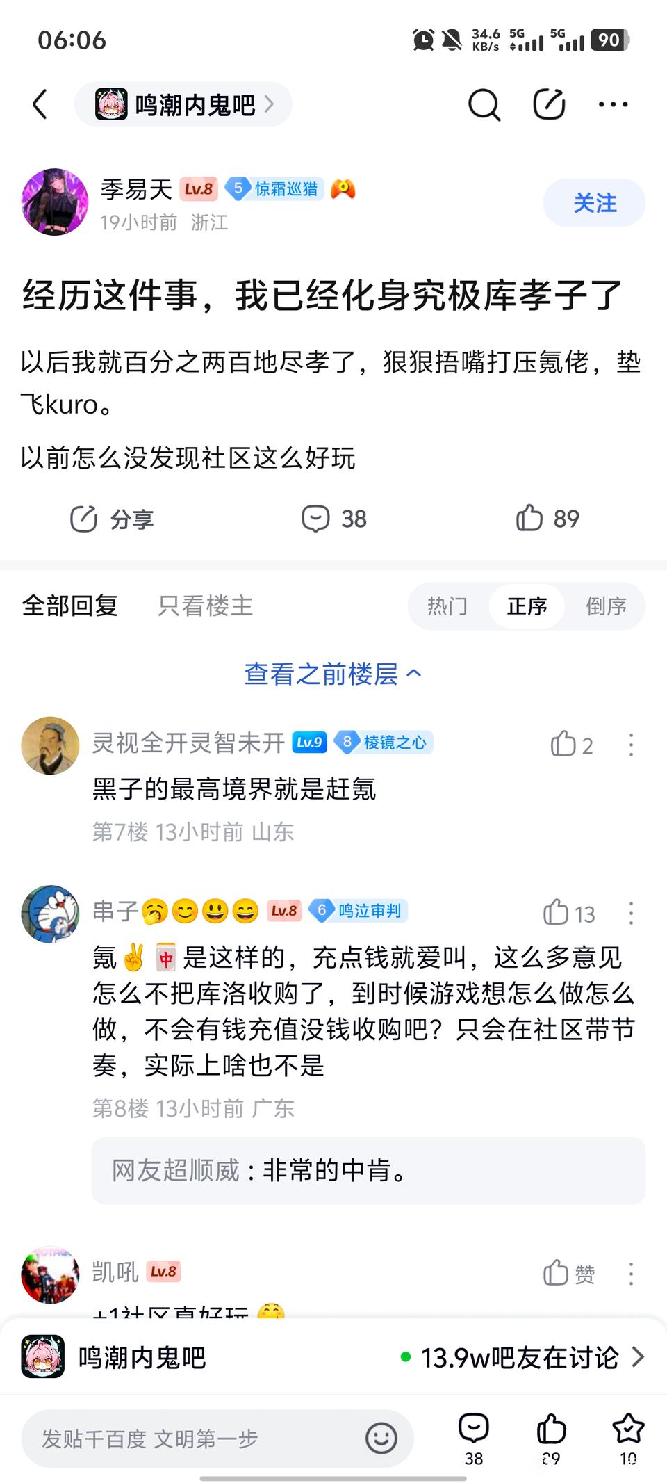 15楼2条pid:1532139352522026/02/18 21:05:25可靠的aaaa19级 感觉不如不能说一句坏话,老冯起手的社区dinner。贴吧用户_JPJXM99 楼主 5级 说句实话,我对这个鸣鬼,最开始的初印象还是在m吧的时候,感觉是理中客性质,这尼玛才几个月?直接变成了这一副dinner样,这谁绷得住?可靠的aaaa1 层主 9级 回复 贴吧用户_JPJXM99 :理中客不就是爆孝新鸣都能来串吗?