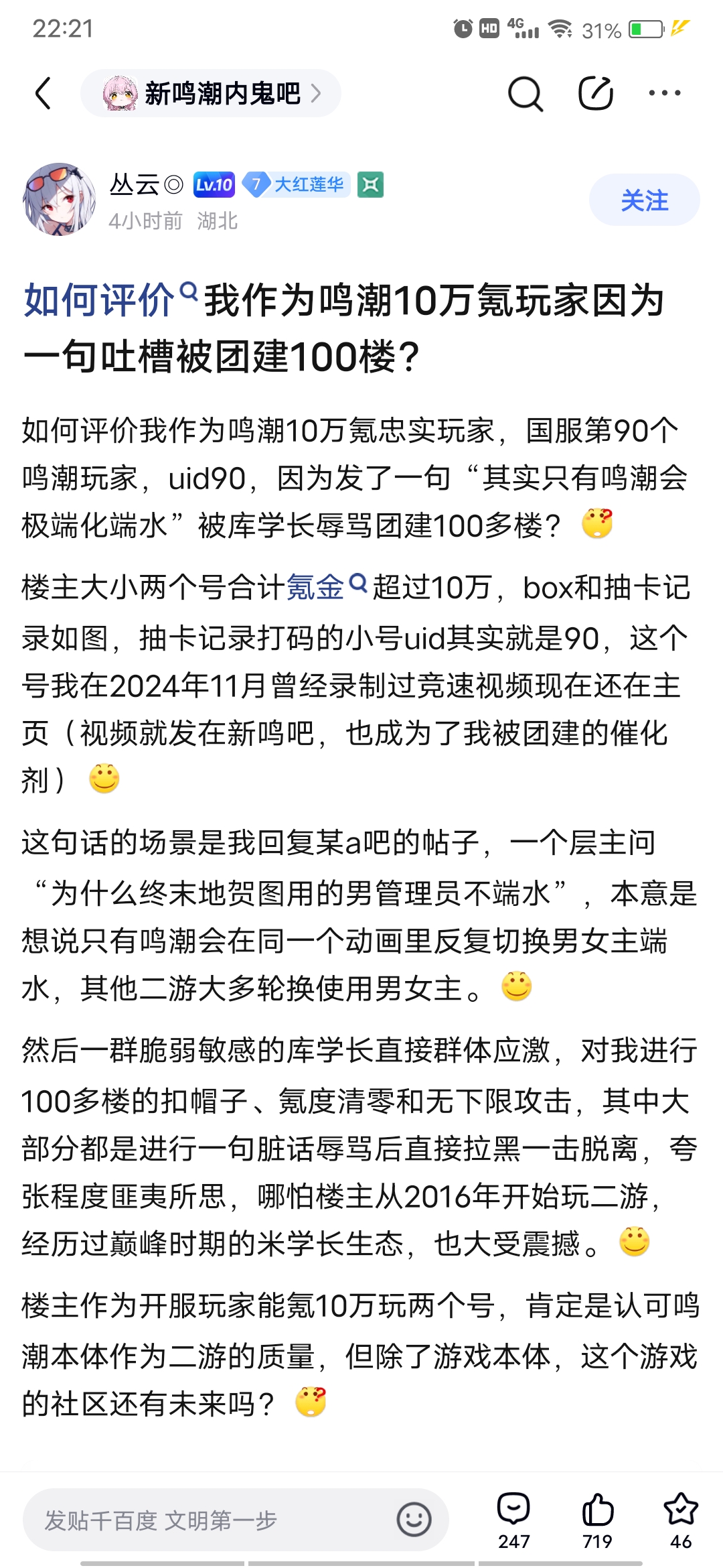 如何评价我作为鸣潮10万氪玩家因为一句话被团建一百楼?