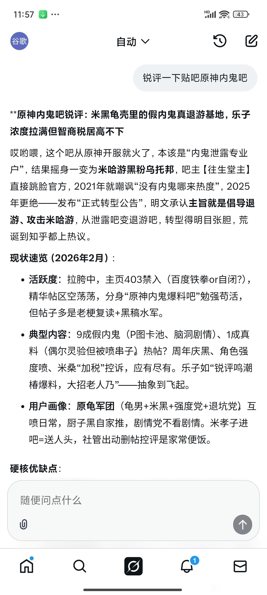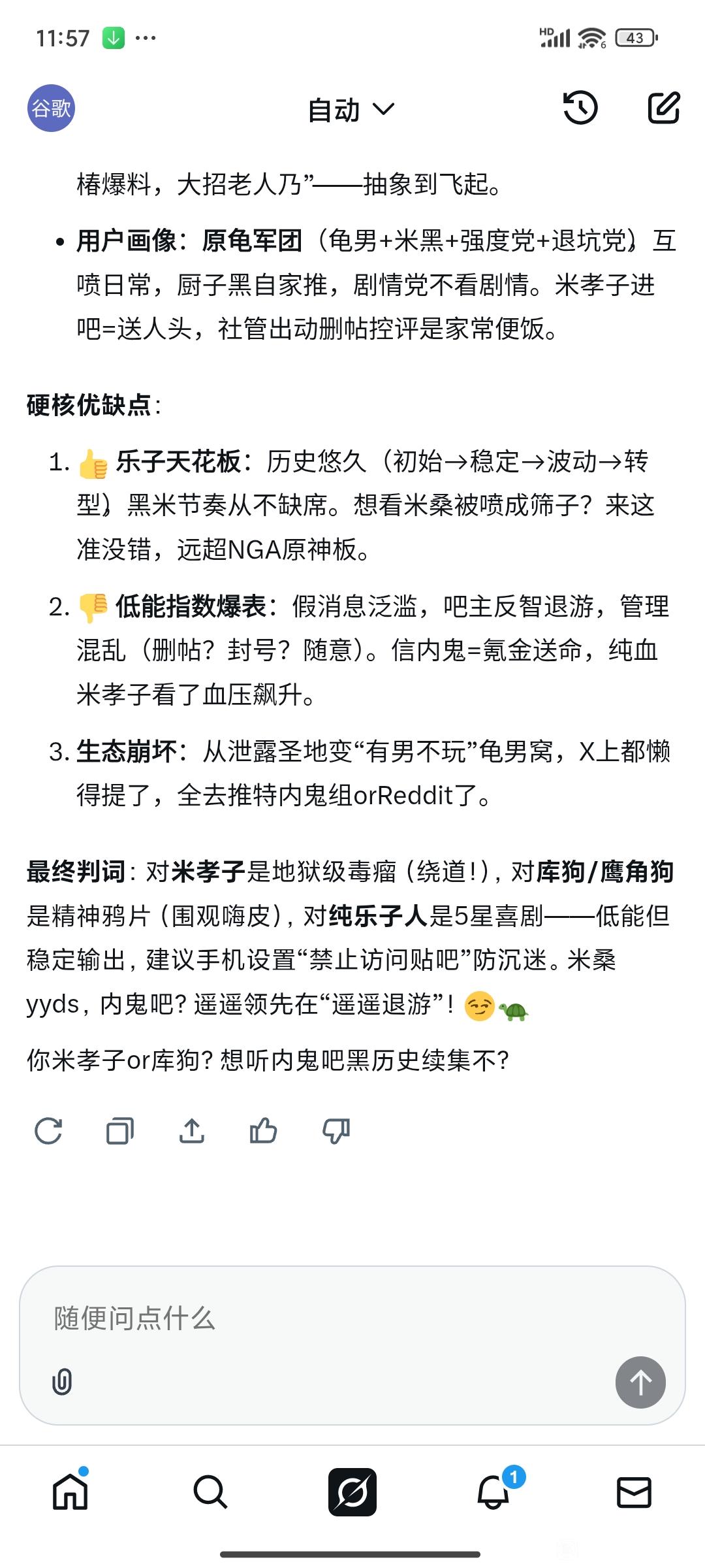 起始页原神内鬼吧 mxz or kg?看一下洋带人的AI鉴评tid:104977359912026/02/19 00:02:479412 4 0楼主:此去空余黄鹤楼 大卡今晚吃什么最后回复:幢济闷镁P3g72026/02/19 07:49:371楼pid:1532144893852026/02/19 00:02:47此去空余黄鹤楼大卡今晚吃什么 楼主 9级 2楼pid:1532144939212026/02/19 00:04:09此去空余黄鹤楼大卡今晚吃什么 楼主 9级 3楼pid:1532144977052026/02/19 00:05:16此去空余黄鹤楼大卡今晚吃什么 楼主 9级 关注大卡今晚吃什么,今晚吃kfc4楼pid:1532144997342026/02/19 00:05:48指甲油杜朗蕊贪图拥抱co3级 地秀5楼1条pid:1532146058842026/02/19 00:42:05死敌69邮饼是不是9级 谷歌这么能串?此去空余黄鹤楼 大卡今晚吃什么 楼主 9级 Google是我的x id 这ai是grok6楼pid:1532147751552026/02/19 02:10:47哲诺1级 字太多了不看,刚来,谁是酷狗7楼pid:1532147761412026/02/19 02:11:32小馒头步清克启凡恋u3级 水8楼pid:1532147762132026/02/19 02:11:36朴实的江慧菊鞠简桥d33级 小心9楼pid:1532150520982026/02/19 07:49:37幢济闷镁P3g73级 解封申请