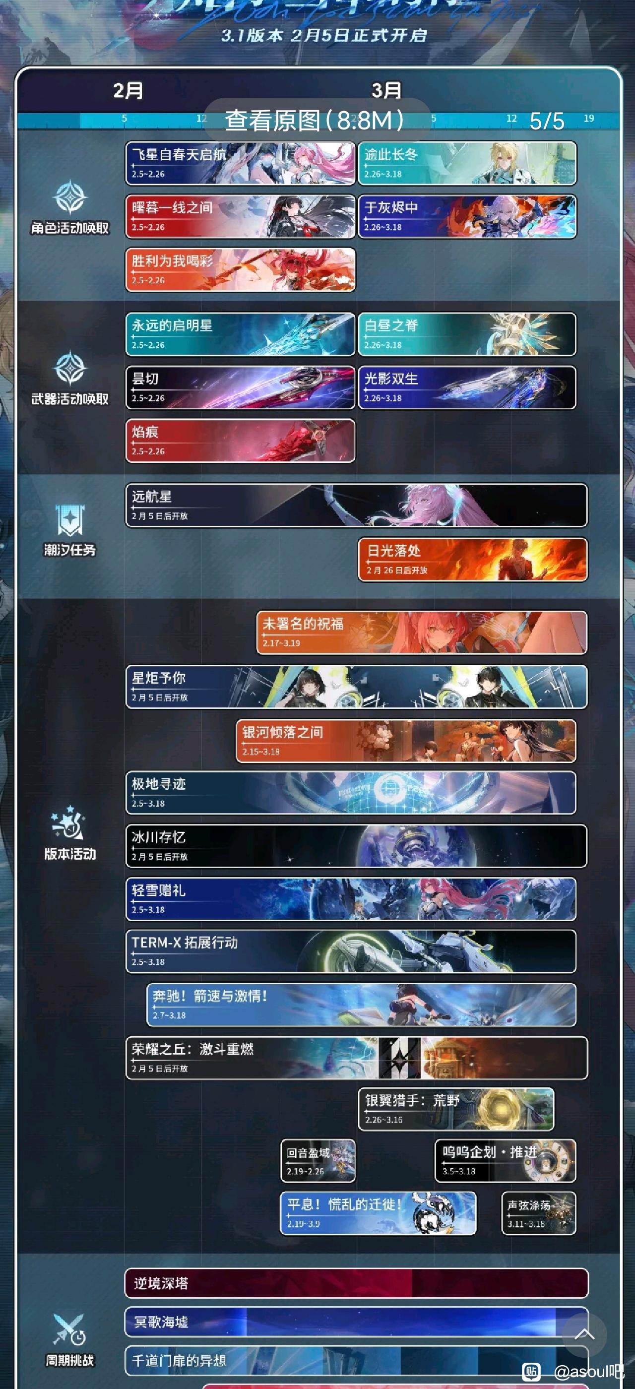 灬火线霸主灬 欧耶卡卡的提回复:现在鸣潮的活动界面已经分的很开了,好像是中间一栏是常驻吧,他有标记的,常驻的可以慢慢做,然后练度如果够的话建议深塔海墟能打多少打多少,这两个给心声多,每周副本有buff,练度低也没事。限时活动主要做最大的那个,就是这次的打牌调酒那个