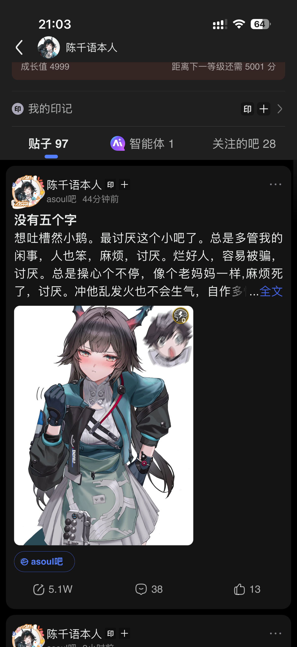 楼主:宇智波文波 陈千语本人最后回复:宇智波文波