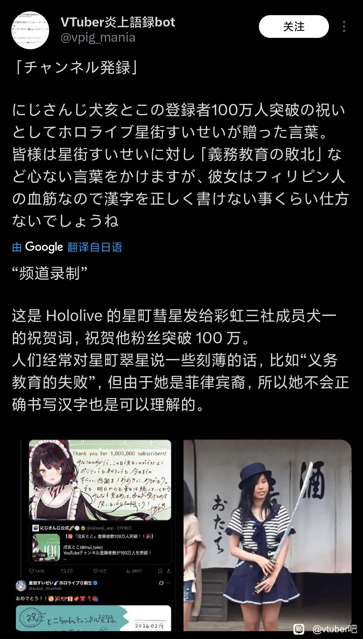 vtuber吧 拐的有点生硬tid:105014924242026/02/20 16:10:39154934 56 0楼主:今日冇知明日事最后回复:九幽太明天2026/02/21 18:52:511楼pid:1532193709062026/02/20 16:10:39今日冇知明日事 楼主 1级 “但由于她是菲律宾裔,所以她不会正 确书写汉字也是可以理解的”听着善解人意,但又不太对劲🤔2楼pid:1532194049452026/02/20 16:23:36沉没之胡德v29级 红白:已加入黑名单3楼pid:1532194727032026/02/20 16:49:38突迪弛频指撕9级 我看小日子教育也快不行了,钱都拿去搞可笑的海岛奇兵了4楼pid:1532195325632026/02/20 17:12:29手残关起来愚愈志难移0012级 htj是这样的5楼pid:1532195833352026/02/20 17:32:01R毛茫lMadridRinchan10级 猩街菲猩6楼pid:1532196002882026/02/20 17:38:29shock_67绕越-11级 别老是要求肥厚写汉字好吗7楼pid:1532198438972026/02/20 19:08:24热情的123wq😋😋😋😋8级 菲奸真的是,润人这一块8楼pid:1532200188362026/02/20 20:08:48幽竹烟雨闯天涯✨幽之歌谣✨12级 9楼pid:1532207850822026/02/21 00:08:12月蚀之血月与海之心💘6级 10楼pid:1532207897552026/02/21 00:09:35萨卡斯基D红狗taffyONAIR13级 日本人写错汉字还挺正常的,就是她自己写完都不检查下,疑似有点敷衍11楼pid:1532212355002026/02/21 05:46:34飘云影16级 12楼1条pid:1532214948512026/02/21 09:16:39断桥陌下1级 那照片上是卢本伟吗?今日冇知明日事 楼主 1级 还真是13楼pid:1532224199592026/02/21 15:16:44木易的岛5级 正统日裔就会写了?14楼pid:1532225046942026/02/21 15:51:34Sagume_Sweet稀神旭东▫11级 15楼pid:1532229681322026/02/21 18:52:51九幽太明天啊这是人类啊2级 犬亥是哪位我多嘴问一句
