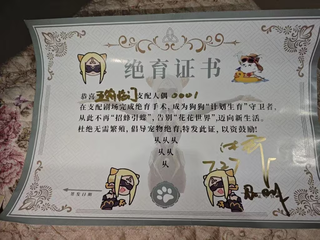 长离cv还给粉丝发绝育证书?