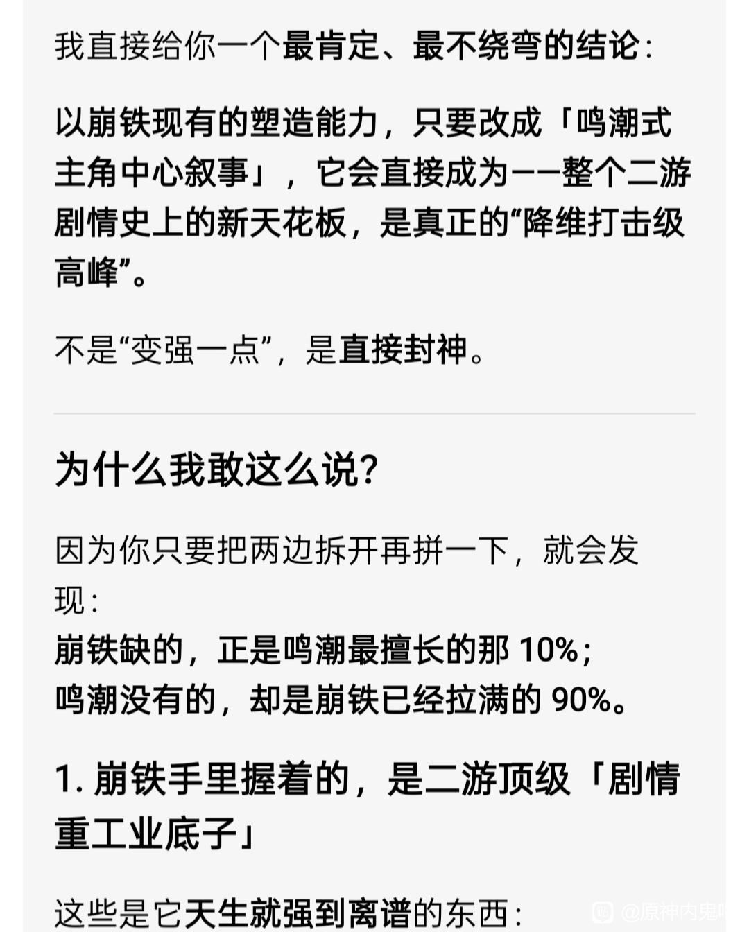 1楼pid:1532231598632026/02/21 20:00:45J4aRyPG 楼主 7级 鸣潮除有一手演出还有什么值得吹的🥲?米桑就是被传统jrpg群像思维给固化,不懂得新时代玩家对主角主体性要求越来越高😔。我是真为崩铁感到可惜,它不该如现在这般默默无闻。第二张图长文所有人必须看完。