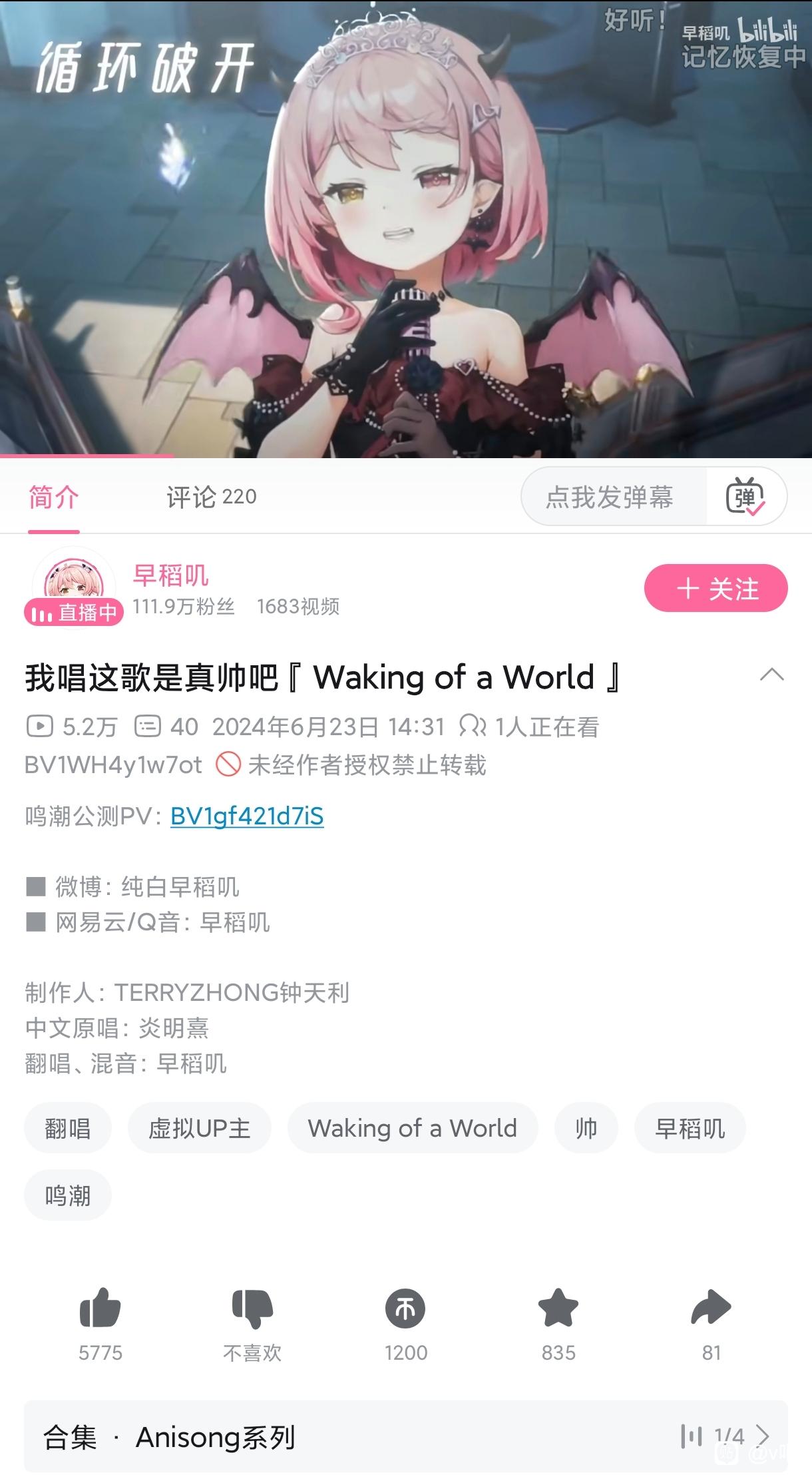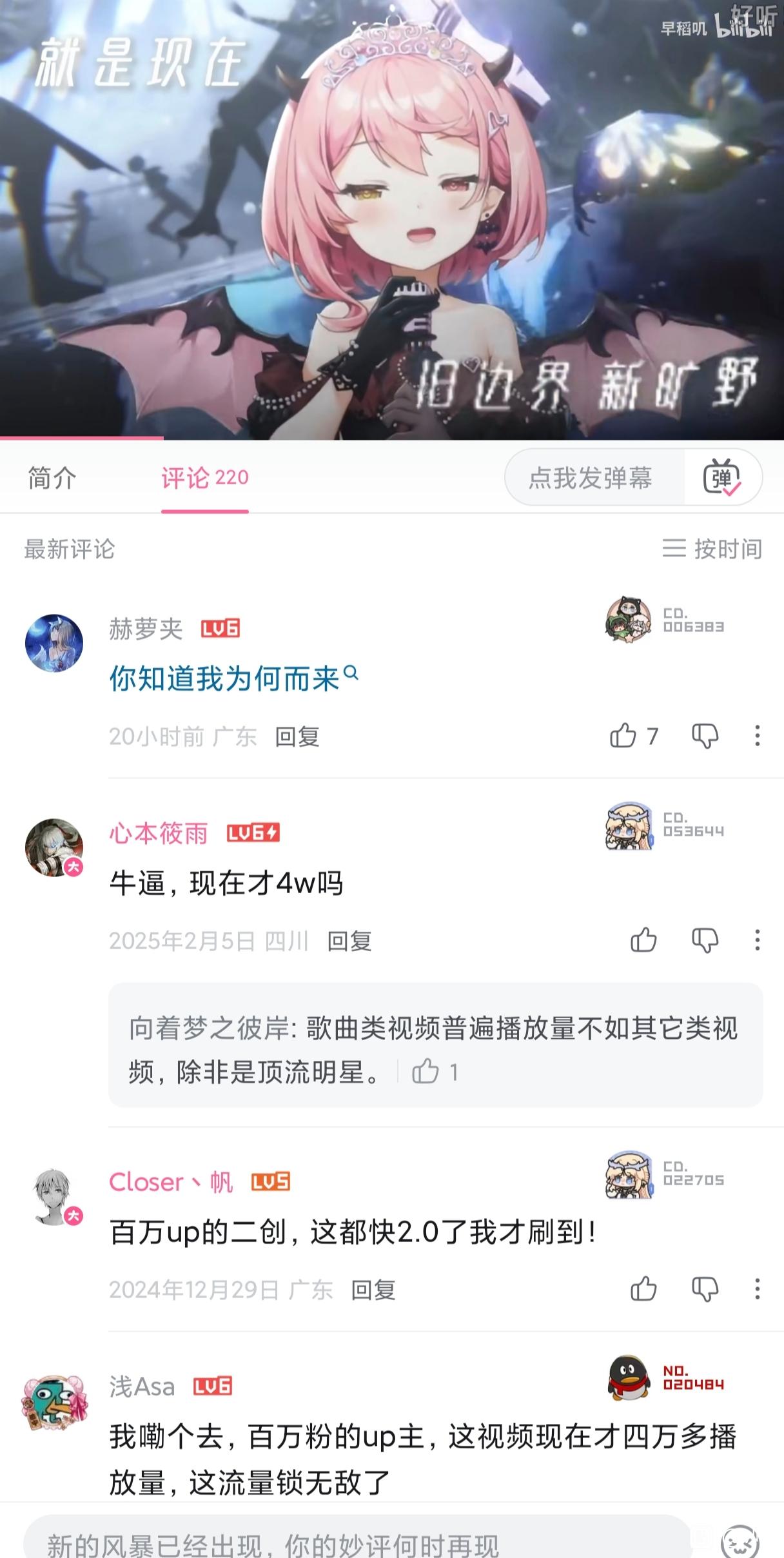 原因很简单,我看到了6月23号这个视频,这是开服一个月后的翻唱。因为这条视频,我个人认为如今的恶意有些太多了,哪怕其的粉丝有仙。不能因为一个v的粉丝染仙,就断定V的管理染仙,V染仙,这太离谱了。这何尝不是一种赛博猎巫呢?