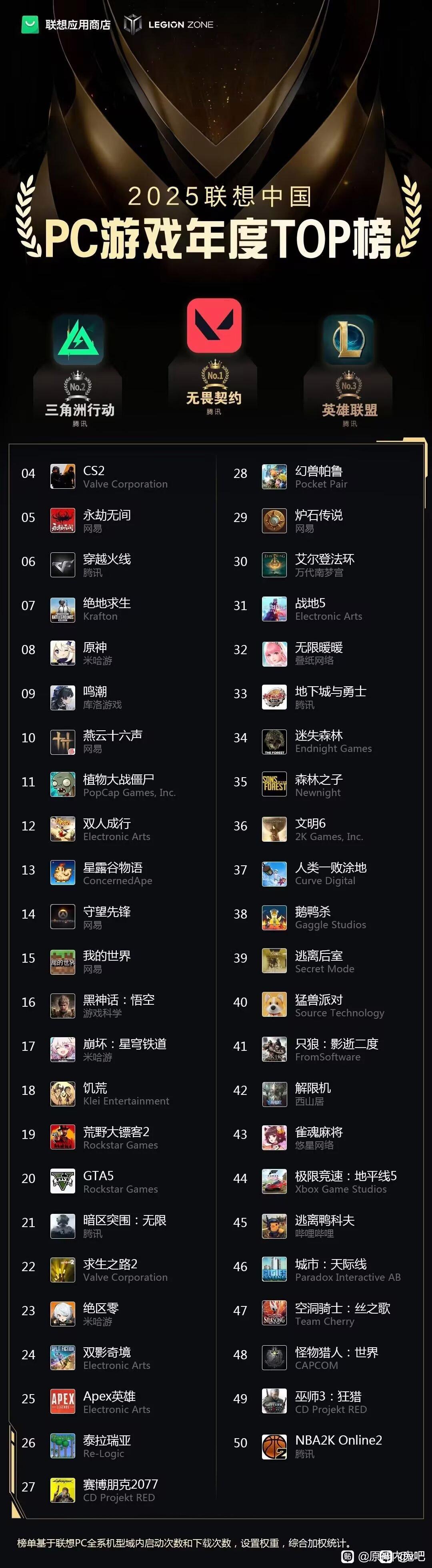 我没记错这个是统计的某个品牌的网吧热度榜单,谁闲着无聊去网吧玩鸣潮?不都是lol,粥和瓦吗